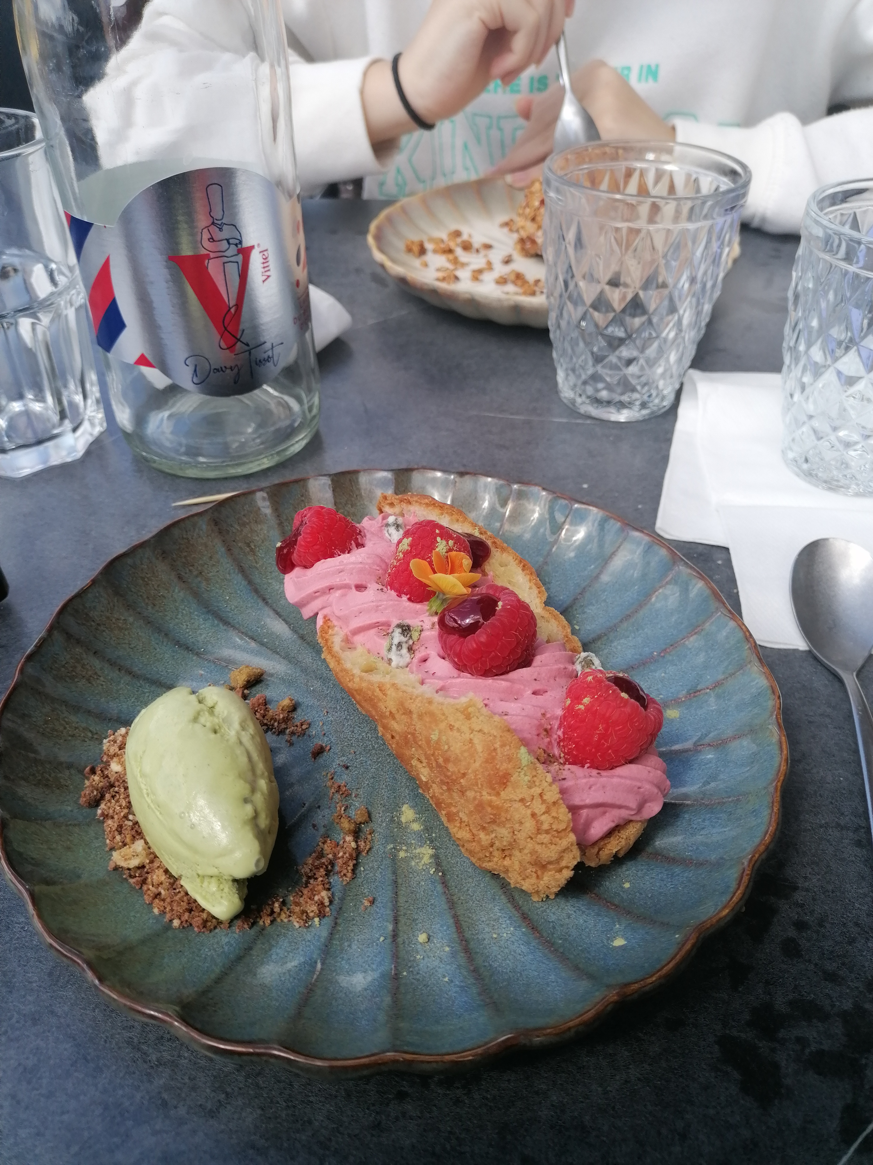 Équipe au top, serviable et souriante Les plats sont très bien présentés, délicieux, orignaux et la carte changent régulièrement pour faire découvrir d’autres merveilles comme -> la carte des desserts # éclair pistache, framboise et thé matcha J’espère que celui ci restera longtemps à la carte ! Restaurant recommandé +++ Vous serez jamais déçu