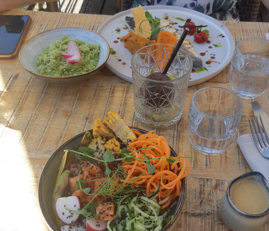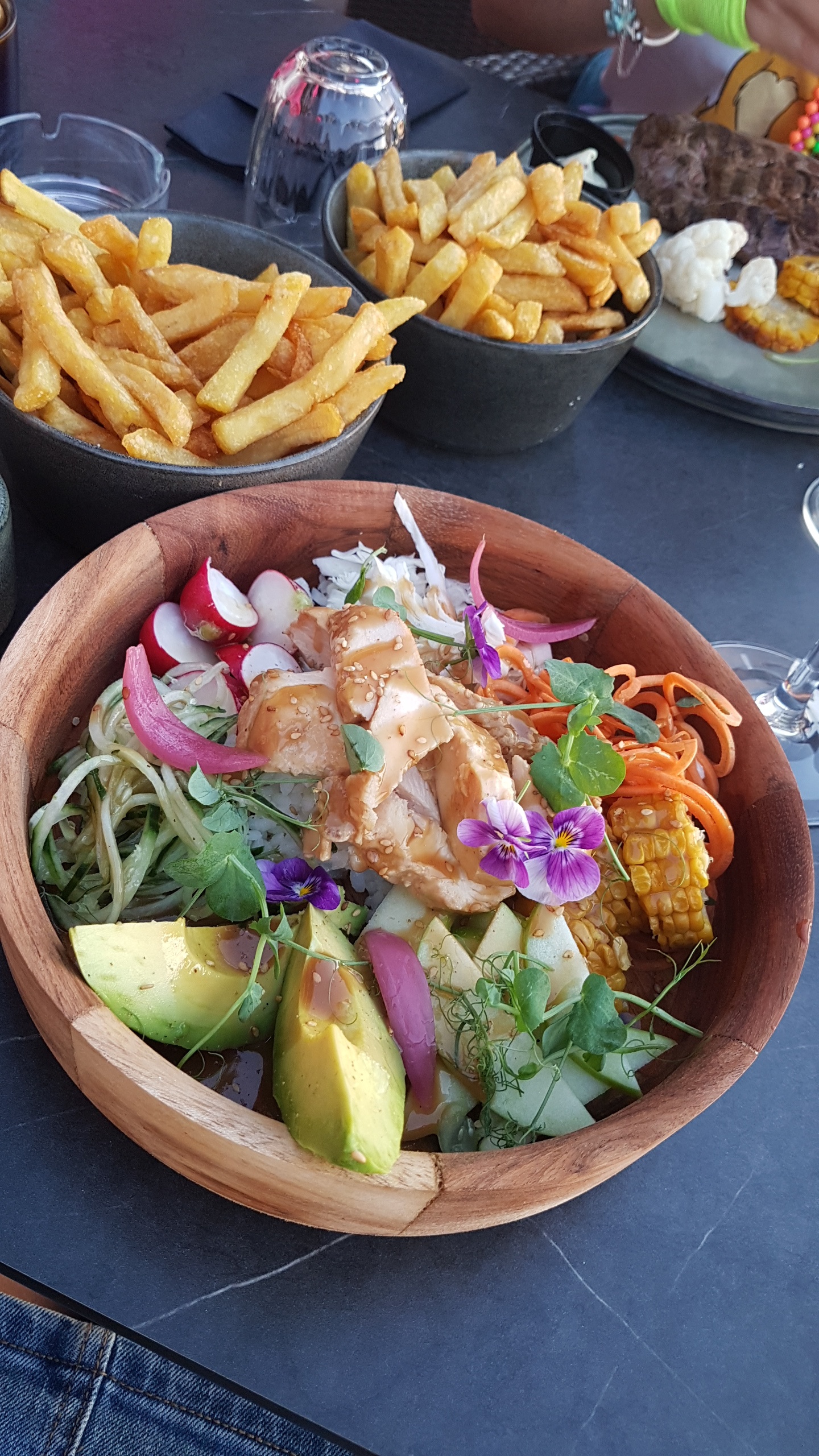 c’était très bon et le restaurant est magnifique on se croirait à la plage ☀️✨ je vous conseille de prendre un cocktail ils sont incroyables et très instagramables 😜
