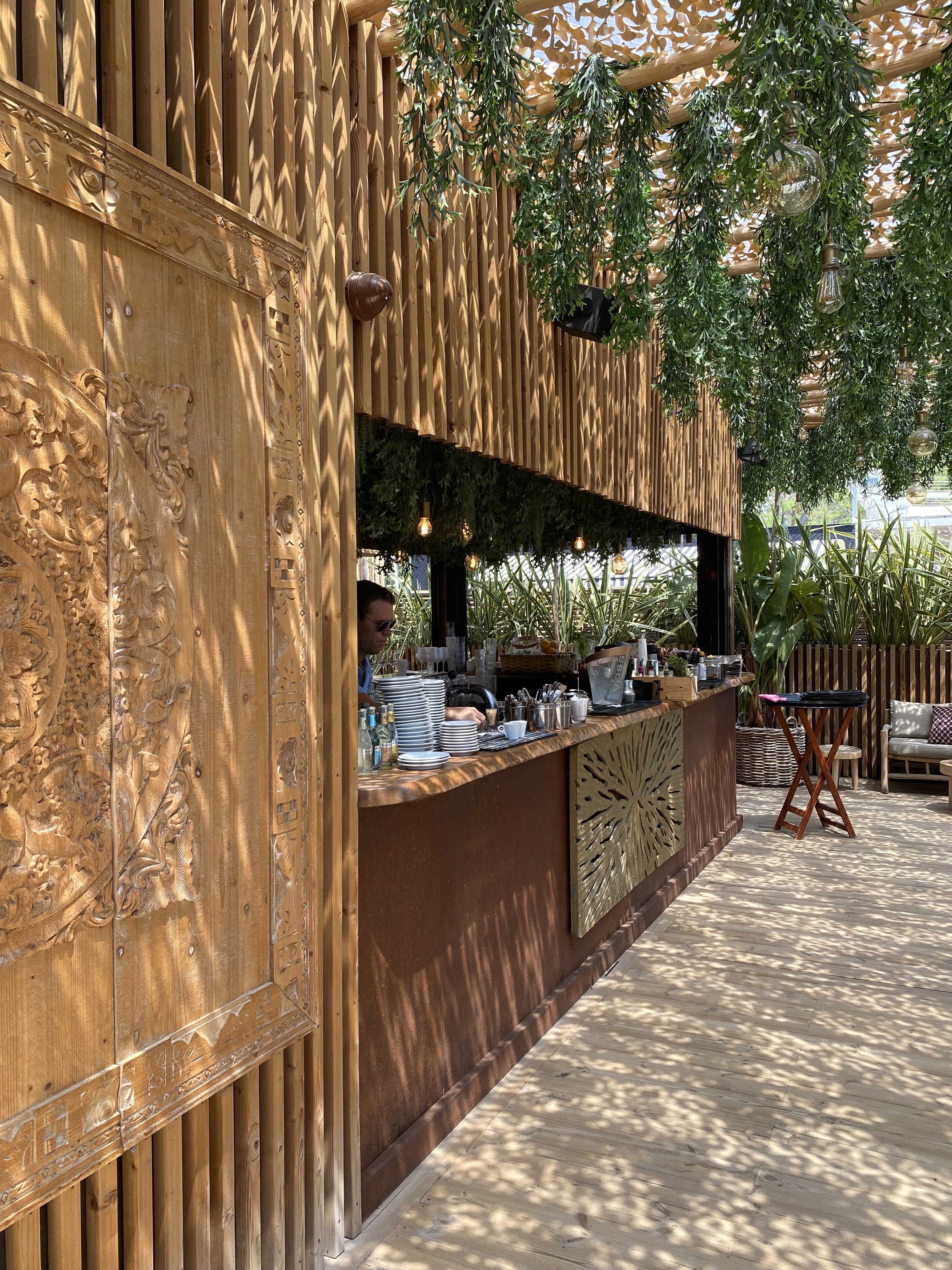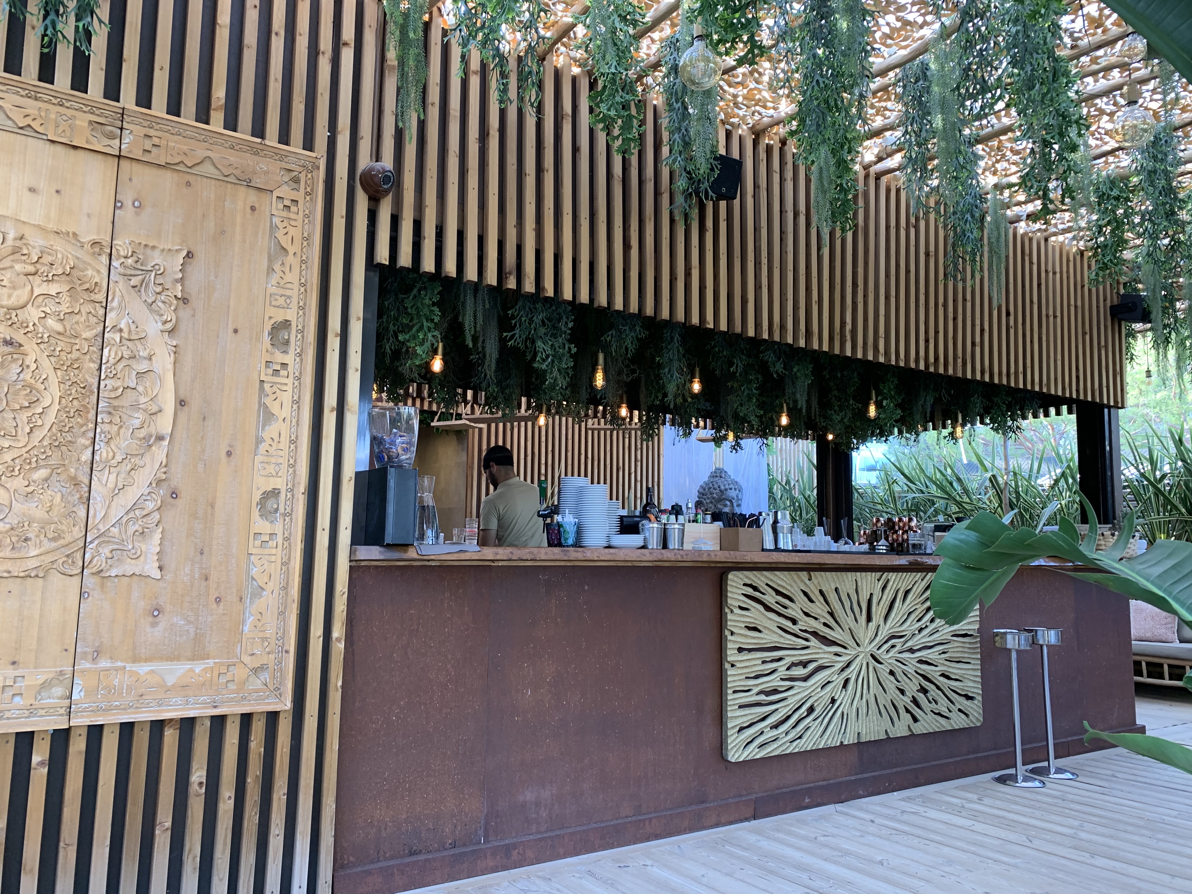 Lieu incroyable par sa décoration. Nourriture passable et trop cher. Mer assez sale de ce côté de la méditerranée Dommage car ambiance paradisiaque !