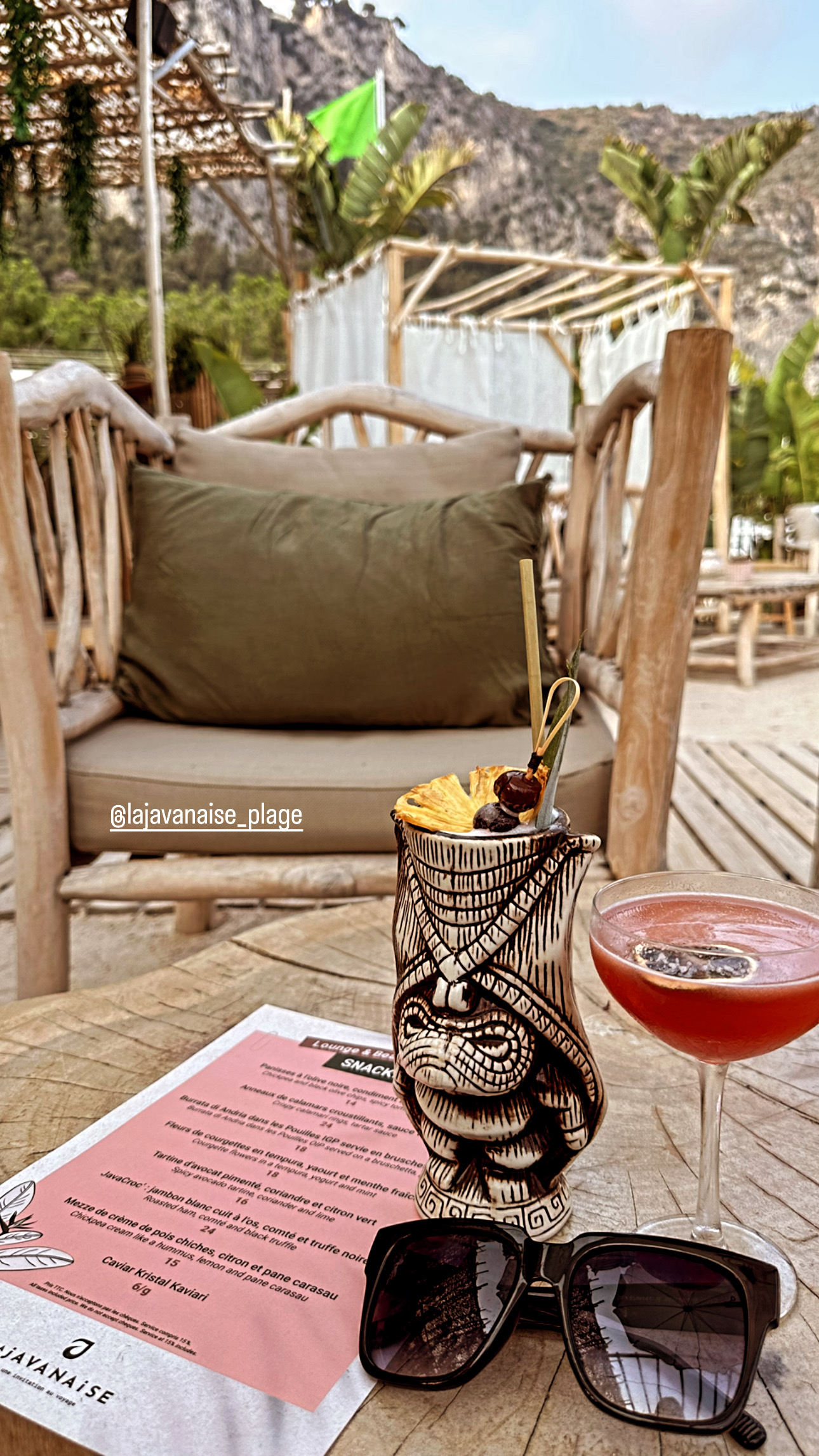 Copropriété du chef Jean-Philippe Blondet (chef exécutif d'Alain Ducasse Londres), la cuisine est exceptionnelle. Généralement, un cadre aussi charmant que celui-ci est compromis par la nourriture, mais cette offre de menu vous donne envie de revenir. Les boissons sont toutes uniques. Le lin et les fibres naturelles utilisés dans la décoration ajoutent une touche cosy et fraîche au décor. Des transats sont également disponibles à la location pour bronzer !