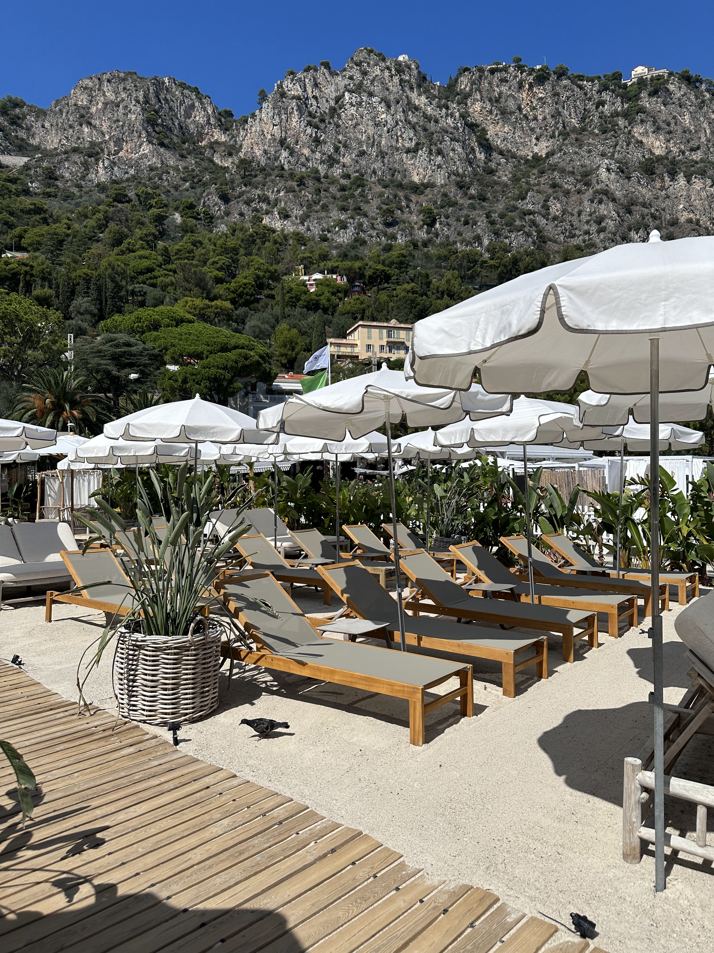Lorsque vous réservez des transats pour 8 personnes en première ligne 5 jours avant votre venue et qu'on vous place en 8iem ligne le jour J pas agréable. On vous répond c comme ça. Pas d accès a la plage. en face pas de jolie plage et accès désagréable car en gravier. Il faut se baigner sur la gauche sur la plage publique. Pas d'intérêt de passer une journée transat la bas. Bonne restauration en revanche et très jolie déco.