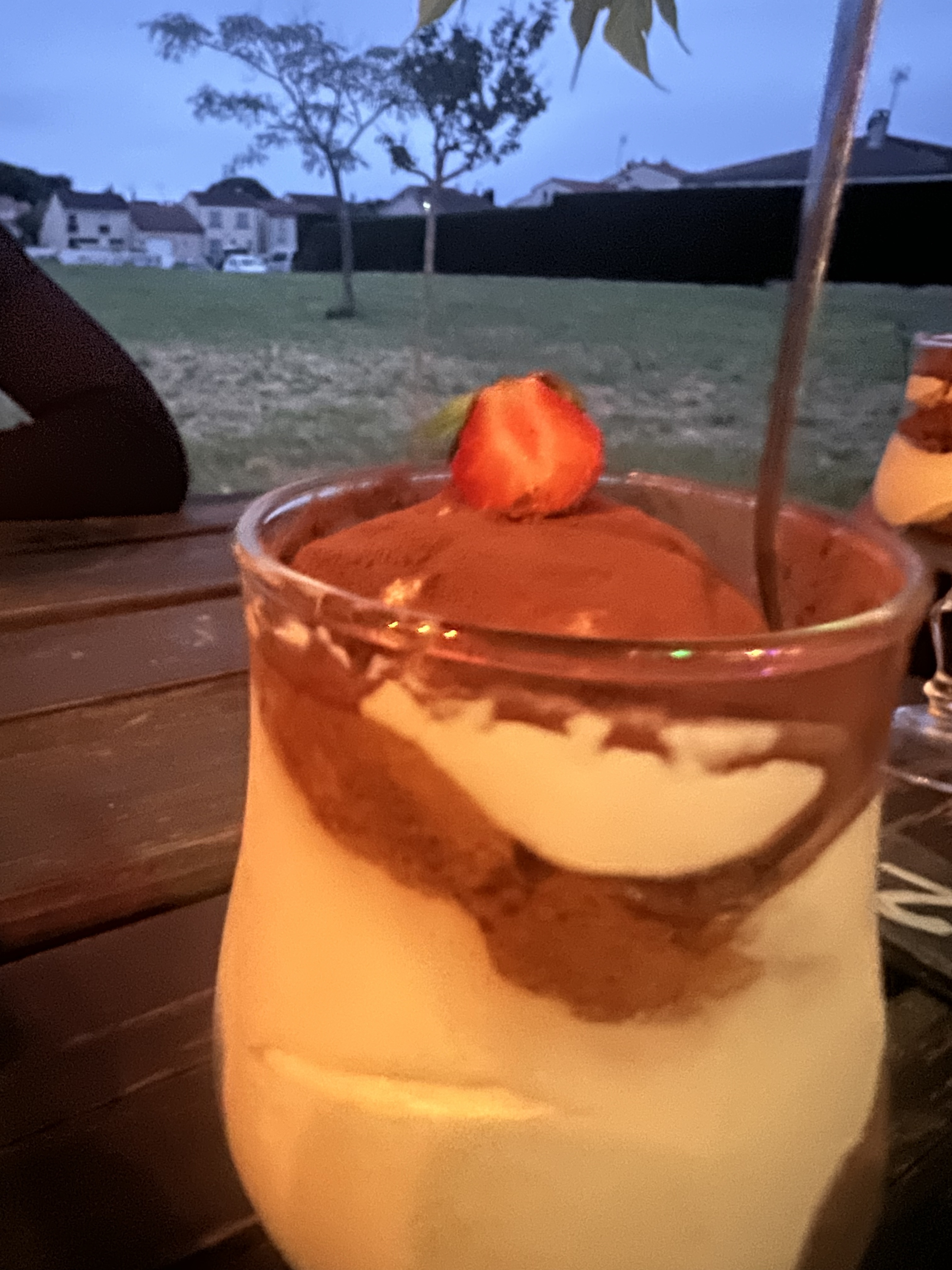 Super menu accueil super du personnels terrasse agréable accras excellent curry de veau fabuleux tiramisu miam miam rosé de lacroux Gaillac avec modération journée ensoleillée merci