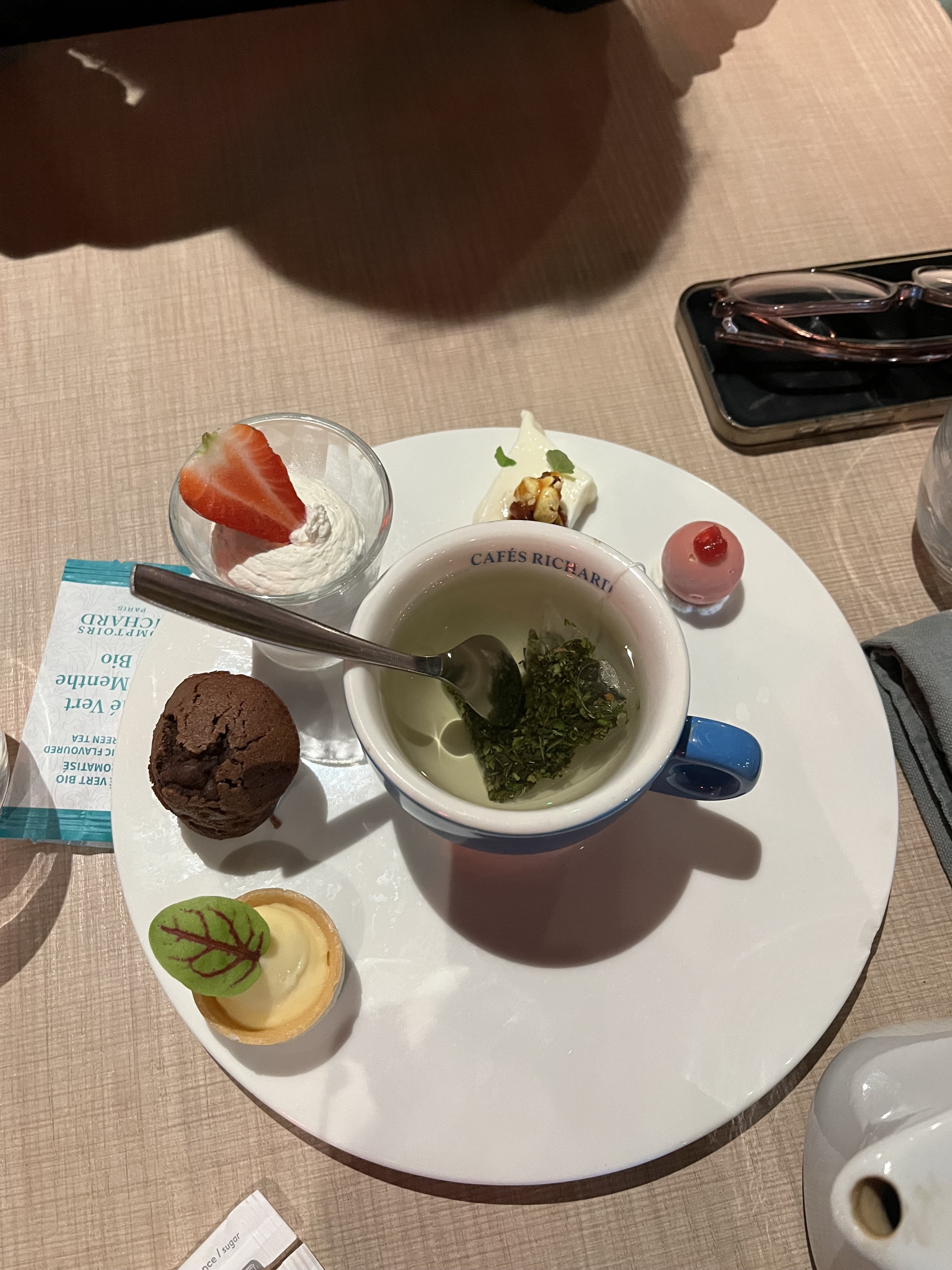 Le plat principal était un délice d'enchantement (tataki de saumon), les tapas sympa mais 2 petits bouts de compté c'était peu surtout quand sur 7 il y en a un qui se permet de prendre un bout pour lui tout seul. Les rillettes n'avaient pas tellement de goût. Concernant les desserts, ayant pris un café gourmand j'ai pu goûter tout les desserts et j'ai été déçue, a part le cheesecake au citron, sans les popcorn (apparemment ça gâche le goût selon mon ami en face de moi) ce n'était pas très goûteux, le goût était trop discret malheureusement.