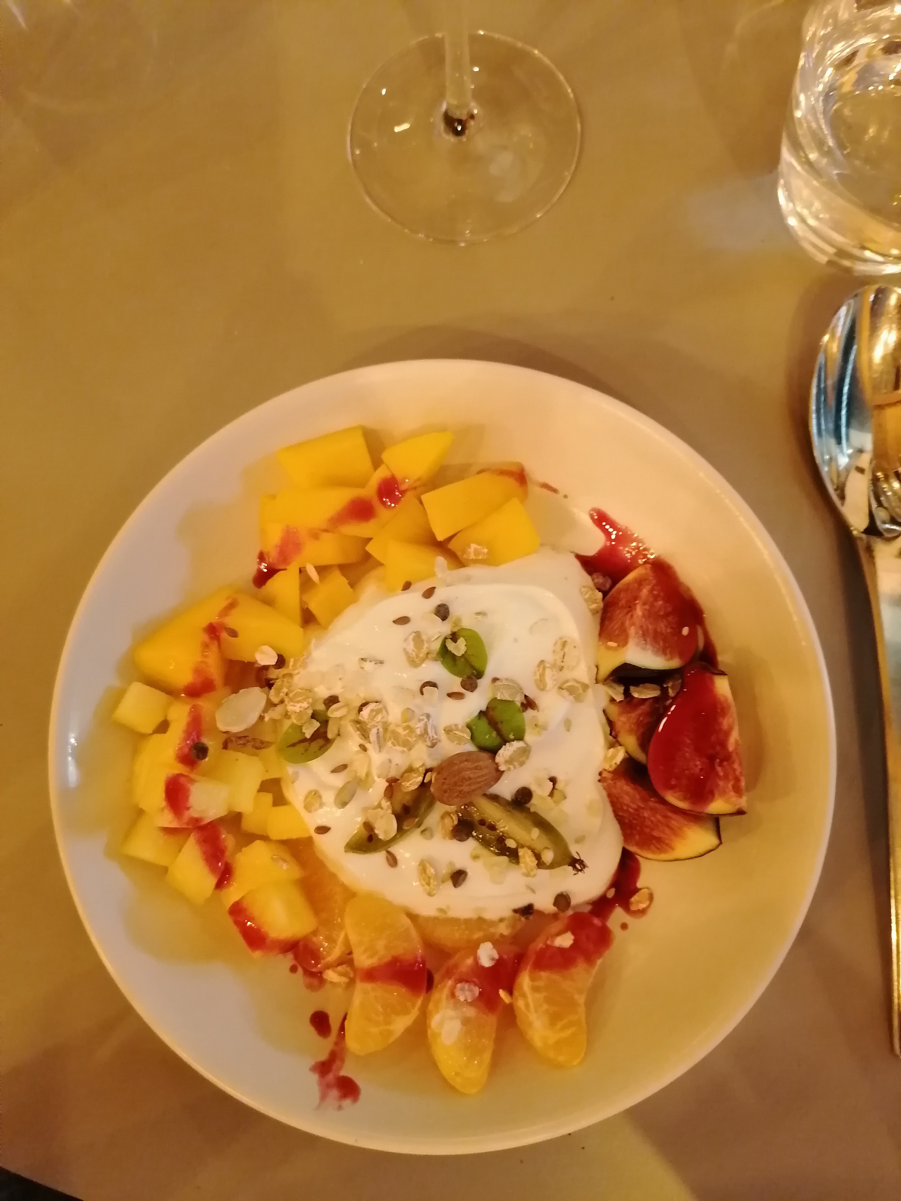Mon ami a bien aimé l'entrecôte, moi j'ai pris le bowl poulet mariné mais pas aimé ce poulet.(goût perso). Heureusement des légumes étaient là . La planchette duo (charcuterie et fromage) fut bonne.