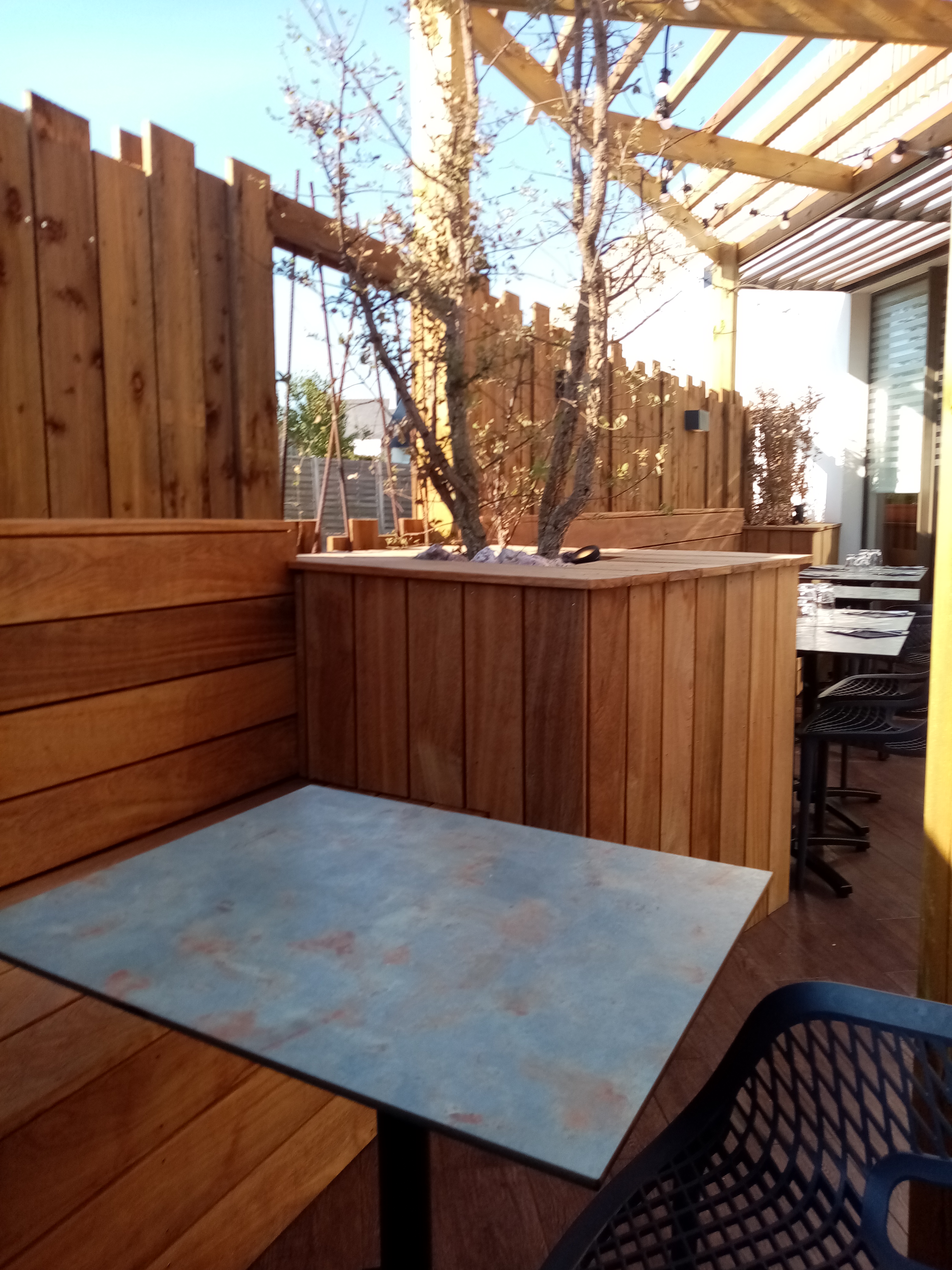 Restaurant très charmant par la décoration sophistiquée, naturelle et chic. J'ai vraiment beaucoup apprécié ce lieu niveau ambiance. Une pépite pour les yeux. Cocktails 🍸 très bons. La cuisine est bonne et on sent que la viande est de qualité, mais elle m'a moins convaincue que la décoration malheureusement, portion un peu petite pour le plat que j'ai choisi et cuisson demandée non respectée (j'ai demandé à point, et précisé que je préférais au pire bien cuit que l'inverse, et j'ai eu saignant, étant pressée, je n'ai pas demandé retour en cuisine, mon compagnon s'est régalé). Petit plus pour la sauce vraiment très bonne. Service rapide, serveur très gentil.