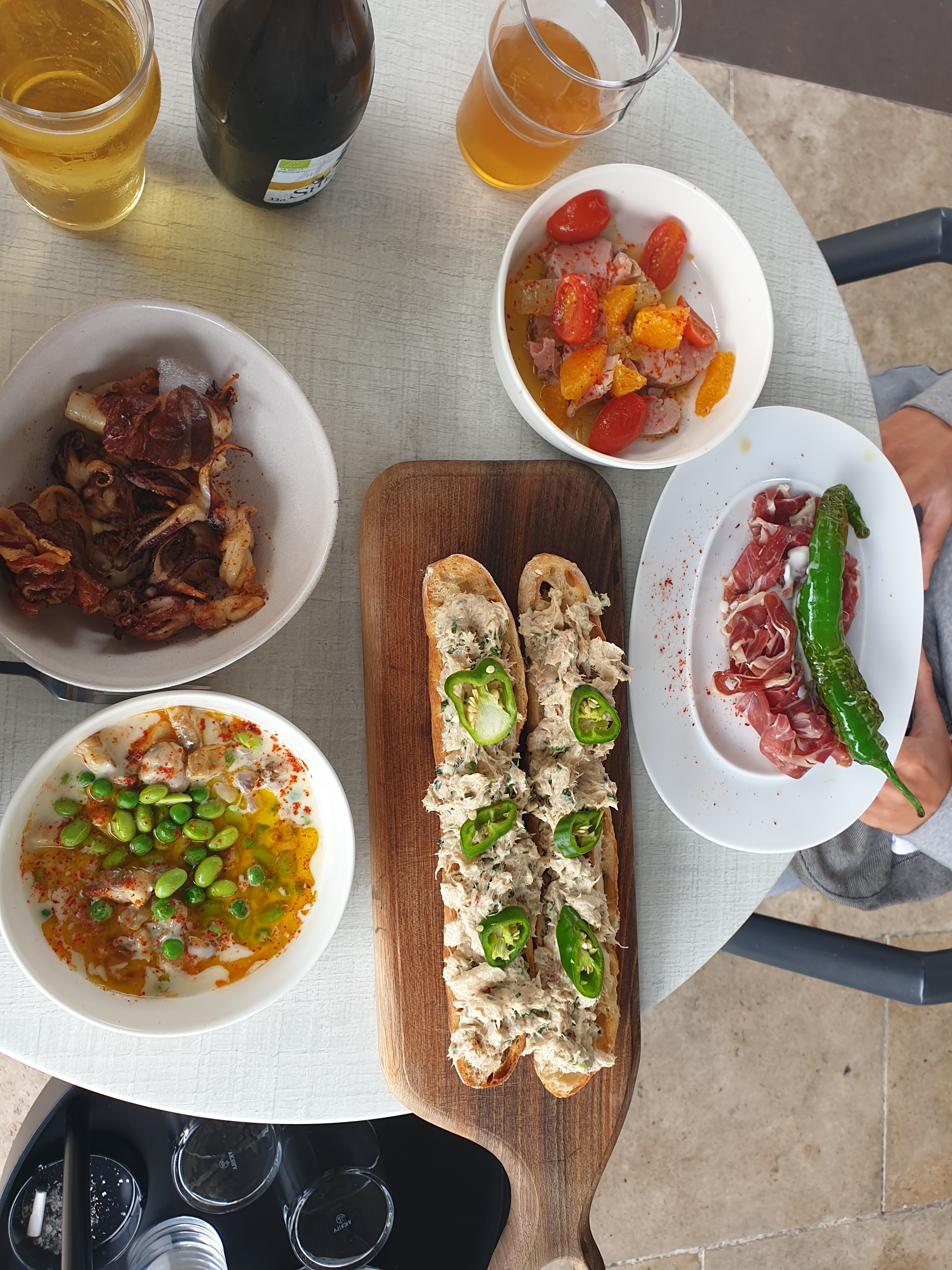 Repas tapas avec d'excellents produits, dans une bonne ambiance et un très joli cadre extérieur.