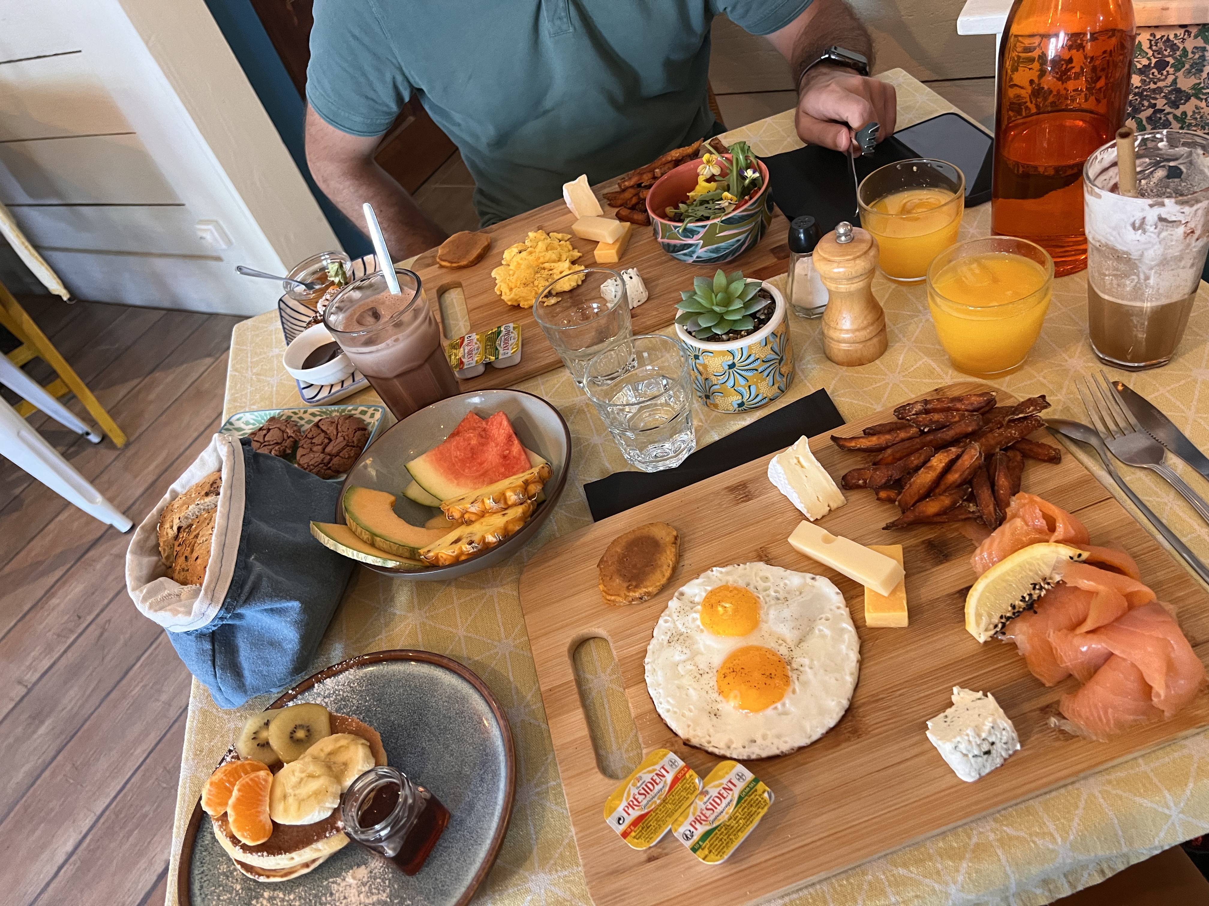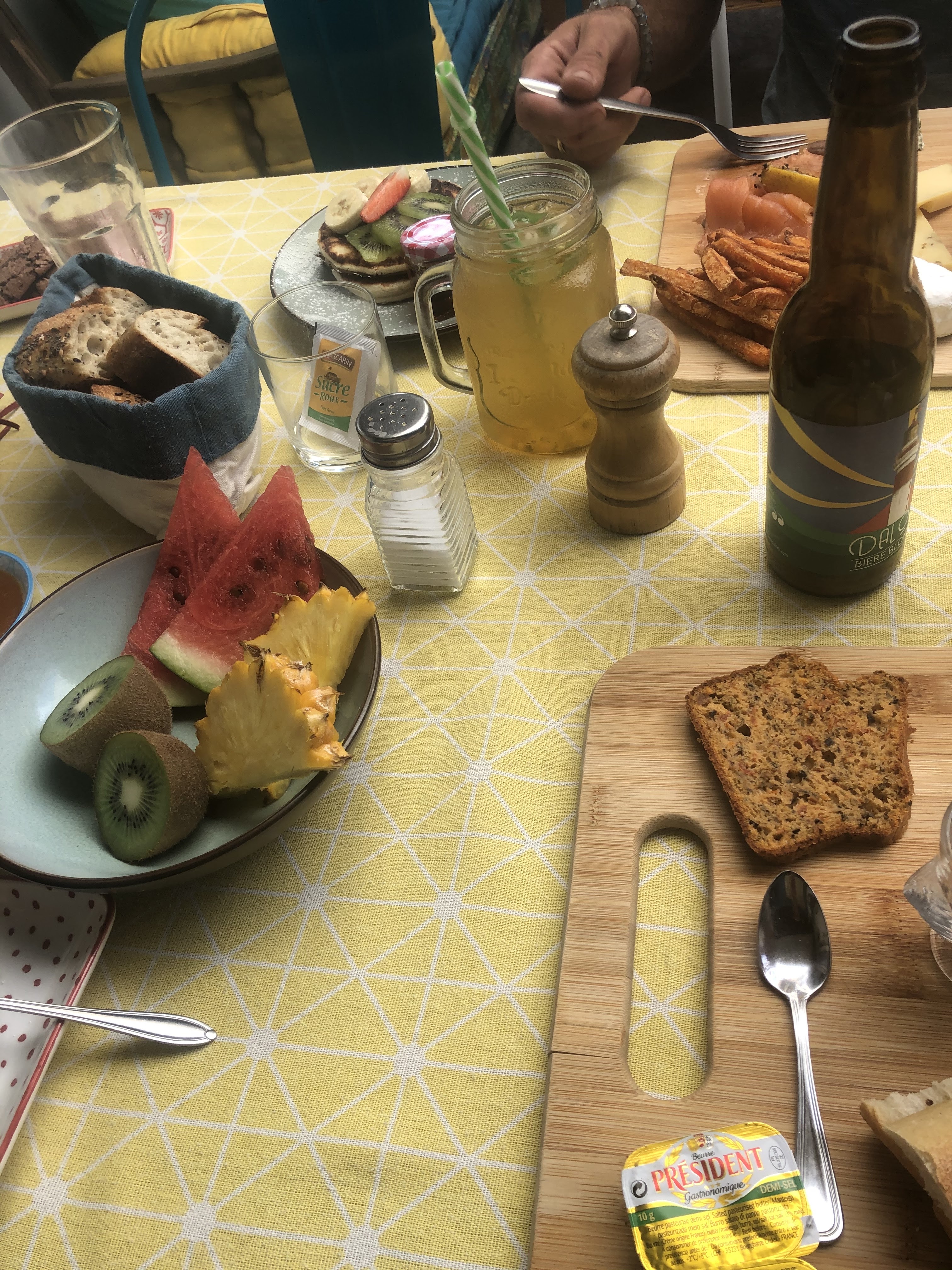 Brunch parfait . A souligner les pancakes aériens comme des nuages. Les cakes salés et sucrés maison totalement cool et les hôtes aussi généreux que leur brunch!