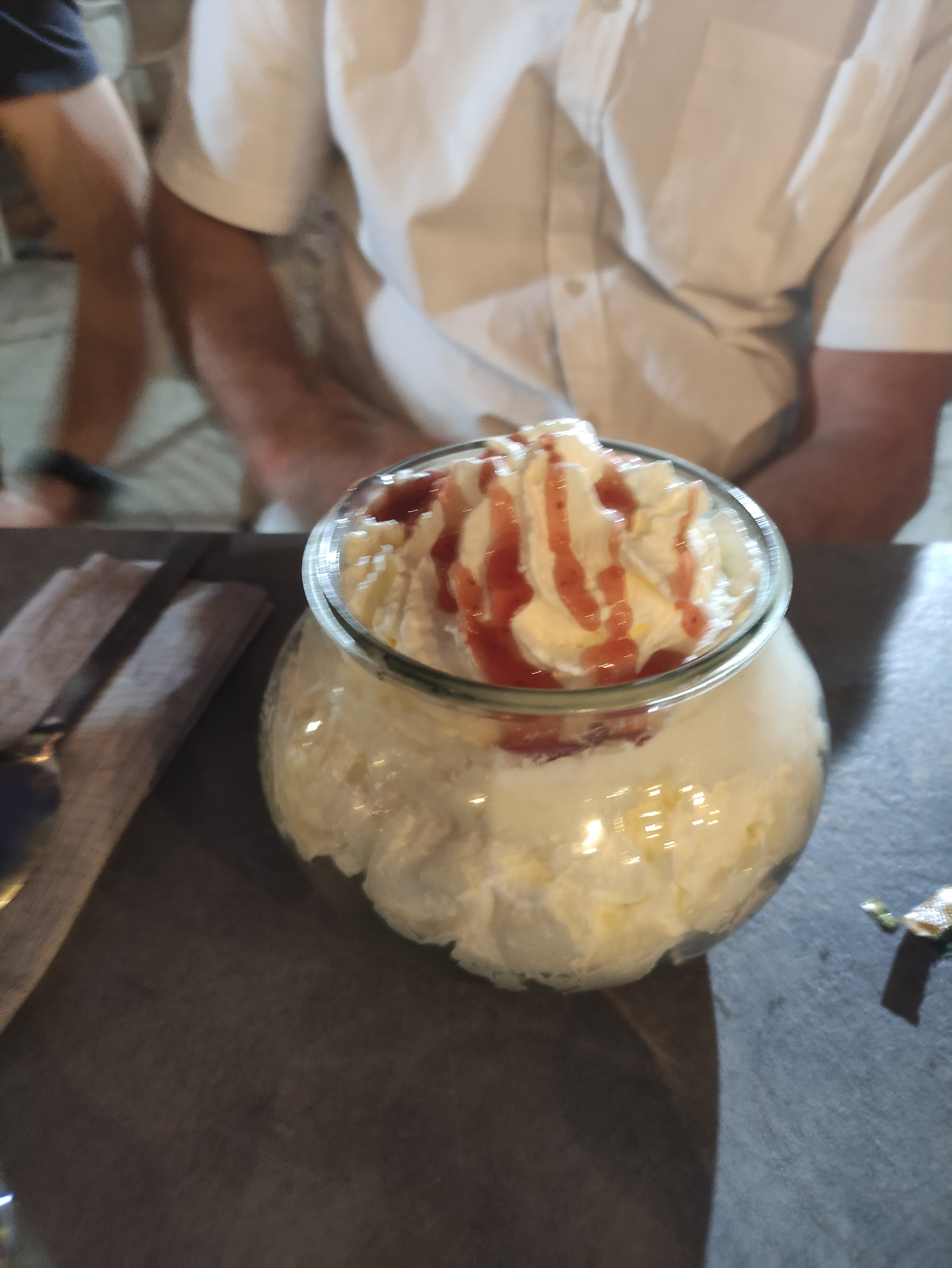 Vue magnifique depuis notre table. Le plat du jour était excellent, découverte de l’encre de sèche ( attention au sourire ravageur après). Les glaces au lait de bufflonnes étaient divines. Merci de l’accueil.