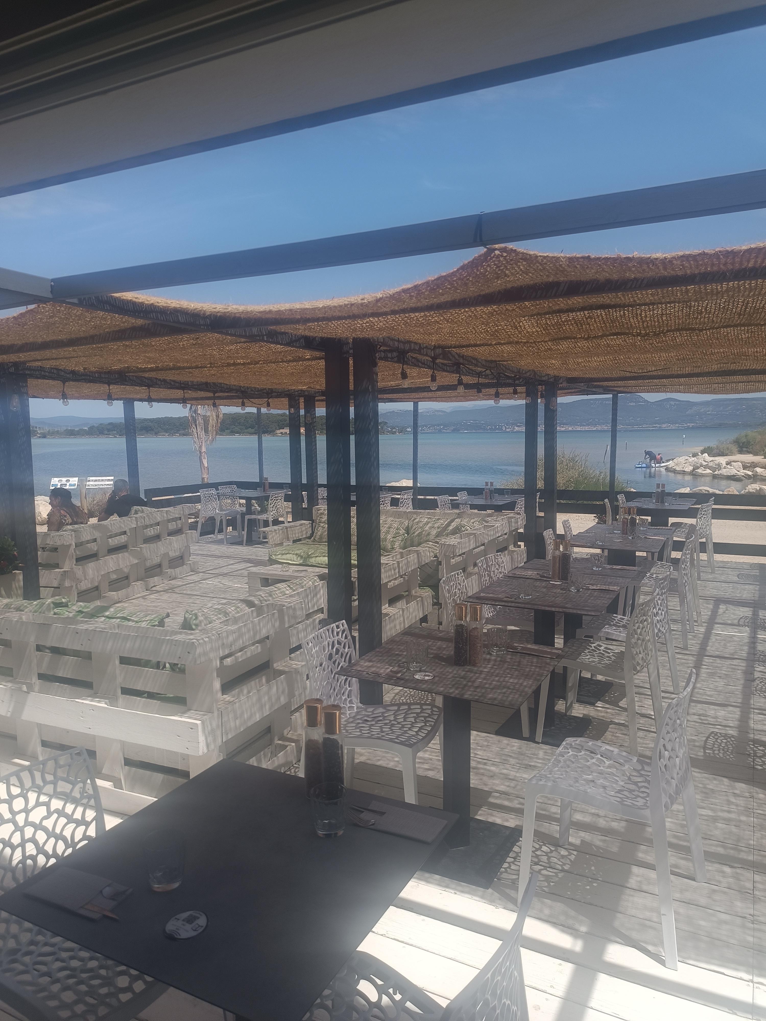 Un cadre extraordinaire face à la mer ou à la lagune, une décoration soignée, le personnel fut très aimable et service relativement rapide, un tartare thon, un carpaccio, un frito misto ,un menu enfant un café gourmand,une bouteille rose, 97 euros pour 4 très raisonnable pour un dimanche je le recommande