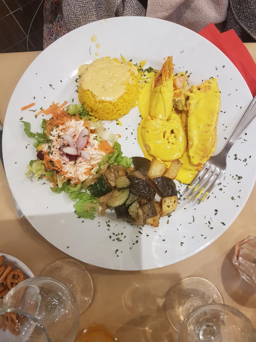 Après avoir attendu presque 10 min à l’entrée du restaurant d’à côté l’Esquinade (eux aussi, ils proposaient l’Aïoli dont j’avais très envie ce soir là), j’ai dû poursuivre mon chemin sans que personne vienne m’accueillir et la cuisine risquait fermer partout (22h30). Je tombe sur La Langoustine et je commande leur menu à 20€ (supions à la provençale + l’aïoli + le dessert) et c’était très bien préparé ! Très bon accueil rapide ! Contente de mon dîner spontané tardif !