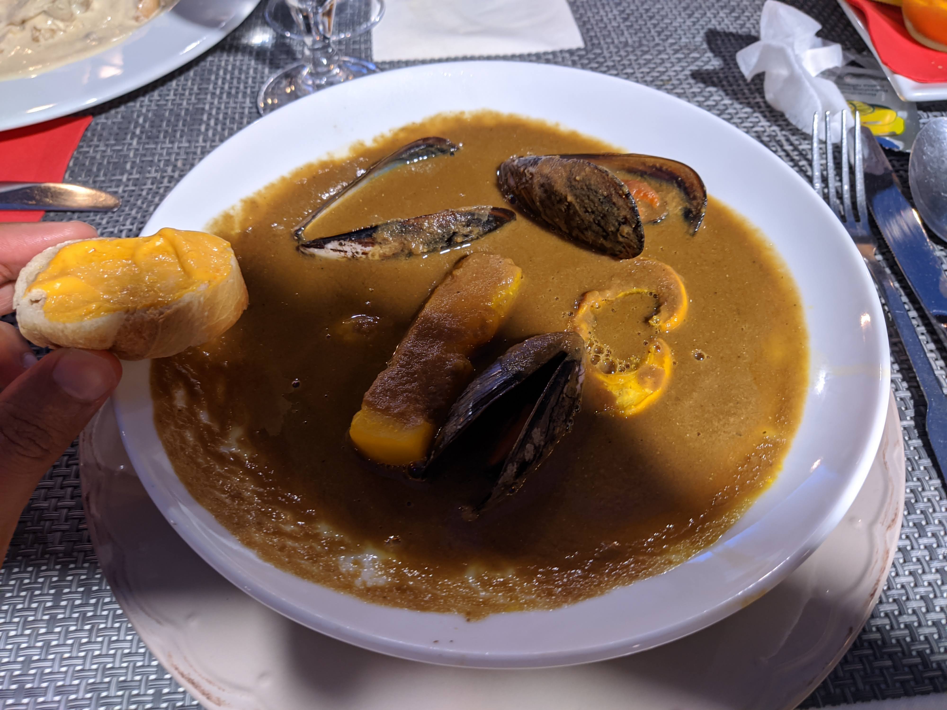 Poissons congelés et assuré par le serveur lui-même :( Bouillabaisse très passable. Une expérience très mitigée. Non recommandé