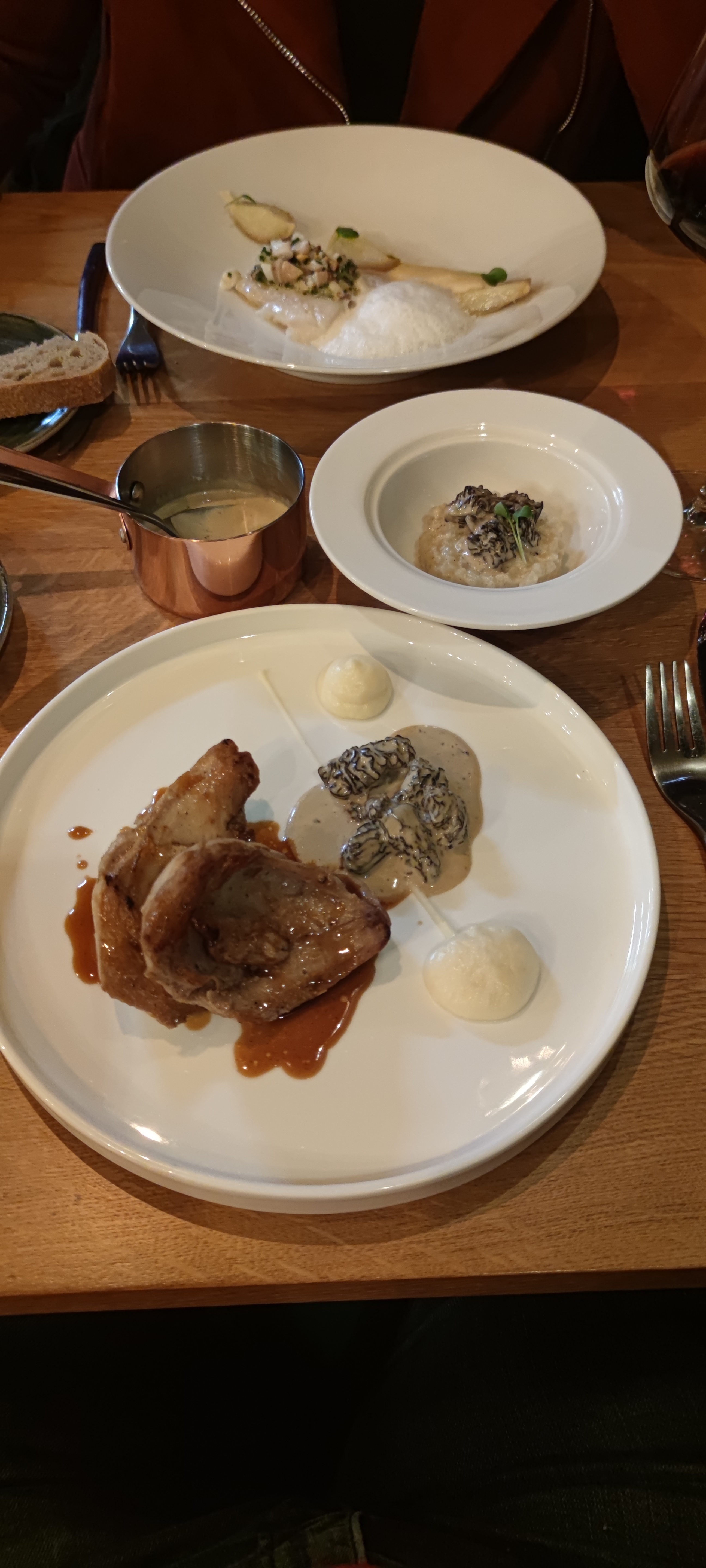 Nous avons apprécié tous les plats (morilles avec asperges, en entrée, faux filet avec betteraves rouges en plat principal, en dessert : gâteau au chocolat). Le service a été impeccable. Ce restaurant est tenu par jeunes, très pros.