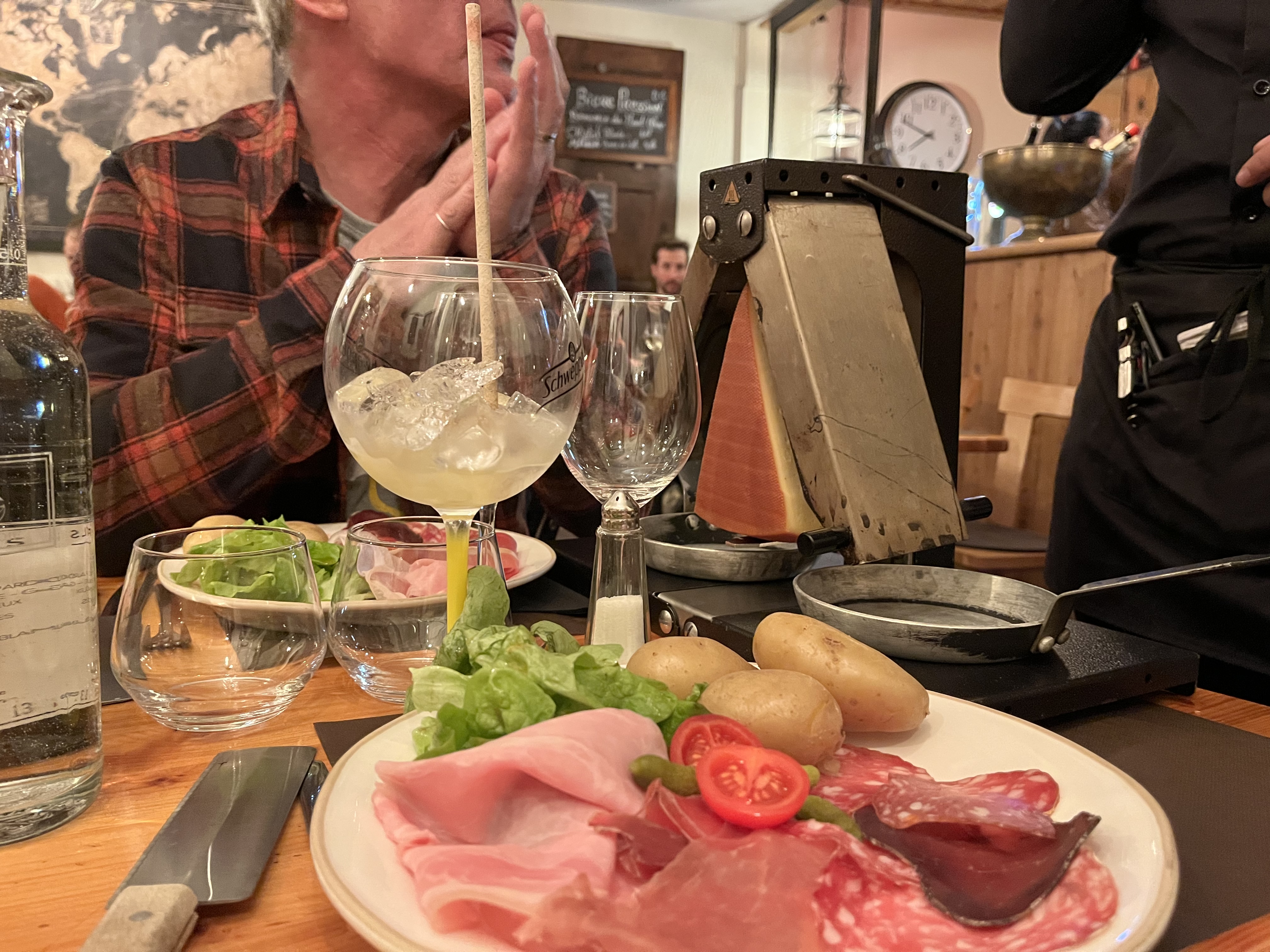 C’est un parfait petit restaurant alpin. Très petit menu au tableau (c’est la seule raison pour laquelle je ne donne que 4 étoiles). Nous avons eu une rachlette accompagnée de pommes de terre à volonté et d'une assiette de charcuterie complète. Escargots classiques. Nous nous sommes assis dehors jusqu'à ce que le soleil se couche et ils étaient contents de nous laisser entrer pour manger le reste de notre repas.