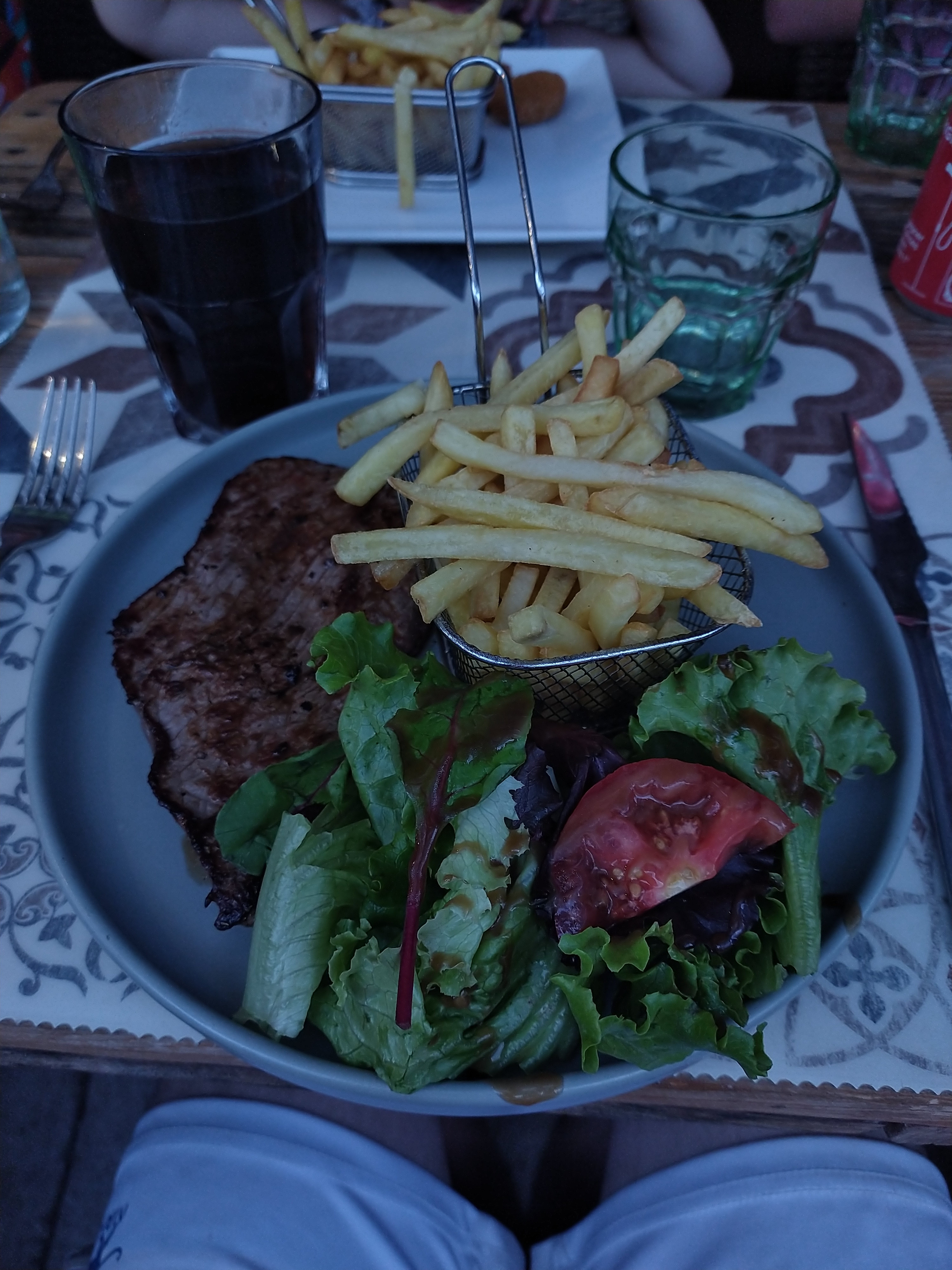 Par quoi commence? Alors commande de 2 steak de taureau qui on le goût de bœuf…: sangrilla qui a le goût de la flotte, sitôt de citron degeu et jaune fluot, pas de glaçon sous 40 degrés Facile d’essais d’arnaquer des touristes sauf que manque de pot, nous sommes en vacance oui, mais chez notre grand mère qui habite ici, donc pas de vrai touriste Faite attention à ne pas vous faire avoir parce que 17€ pour au final du steak (pas de taureau du coup) trois feuille de salade sans rien d’autre c’est de goutte la geule du monde Malgré tout heureusement que la jeune serveuse rattrape le tout Ps: le Monaco été bon