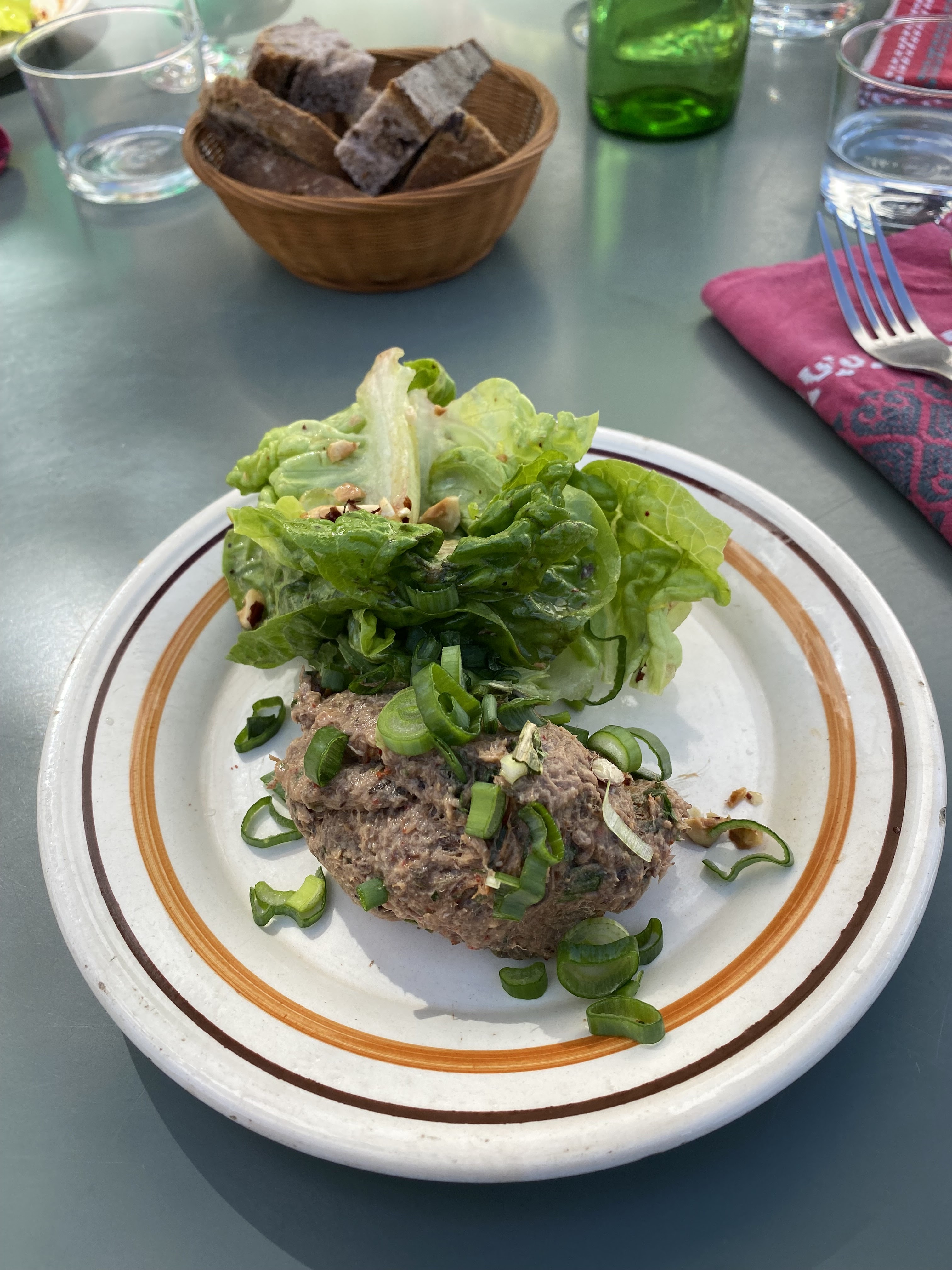 Si vous vous arrêtez à Sauveterre de Bearn (le village et les ballades valent le détour) dejeunez ici. Les produits sont un régal, pour les yeux et les papilles. Merci aux cuisiniers et au jeune homme qui servait (le patron ?) qui a été très accommodant (je pense au parasol qu'il nous a rajouté) 😁