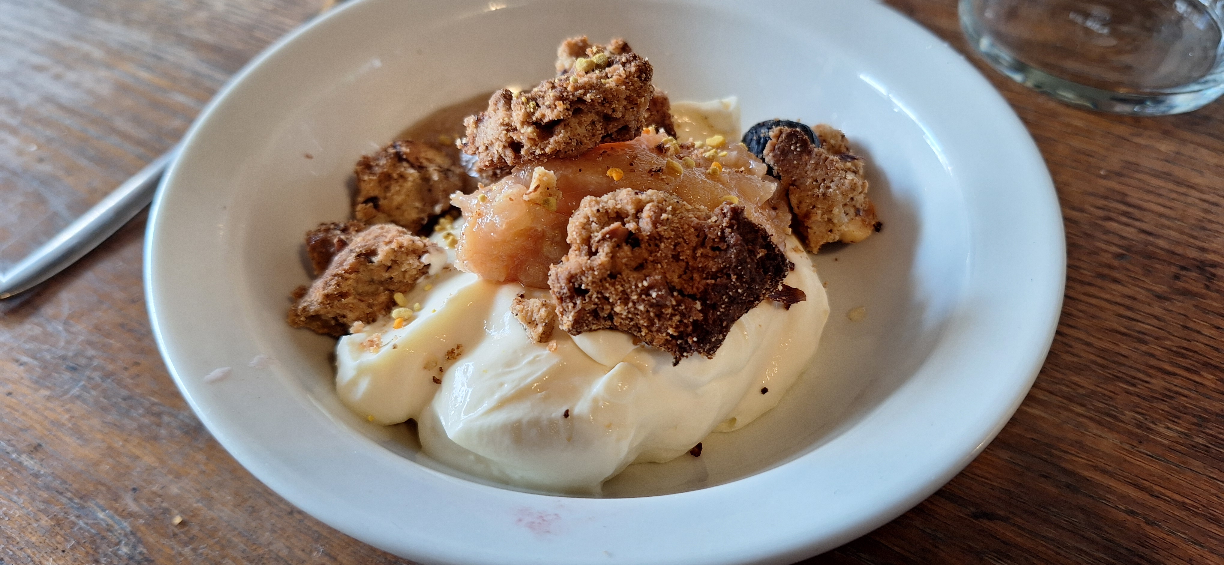 Accueil chaleureux, cadre top. Repas super bien commencé ... Bémol le dessert et le café. Abricots beaucoup trop acides malgré le miel, servi trop chaud et la crème montée avait certainement tourné ?! Pour ma part je n'ai pas bu le café et pas mangé le dessert.
