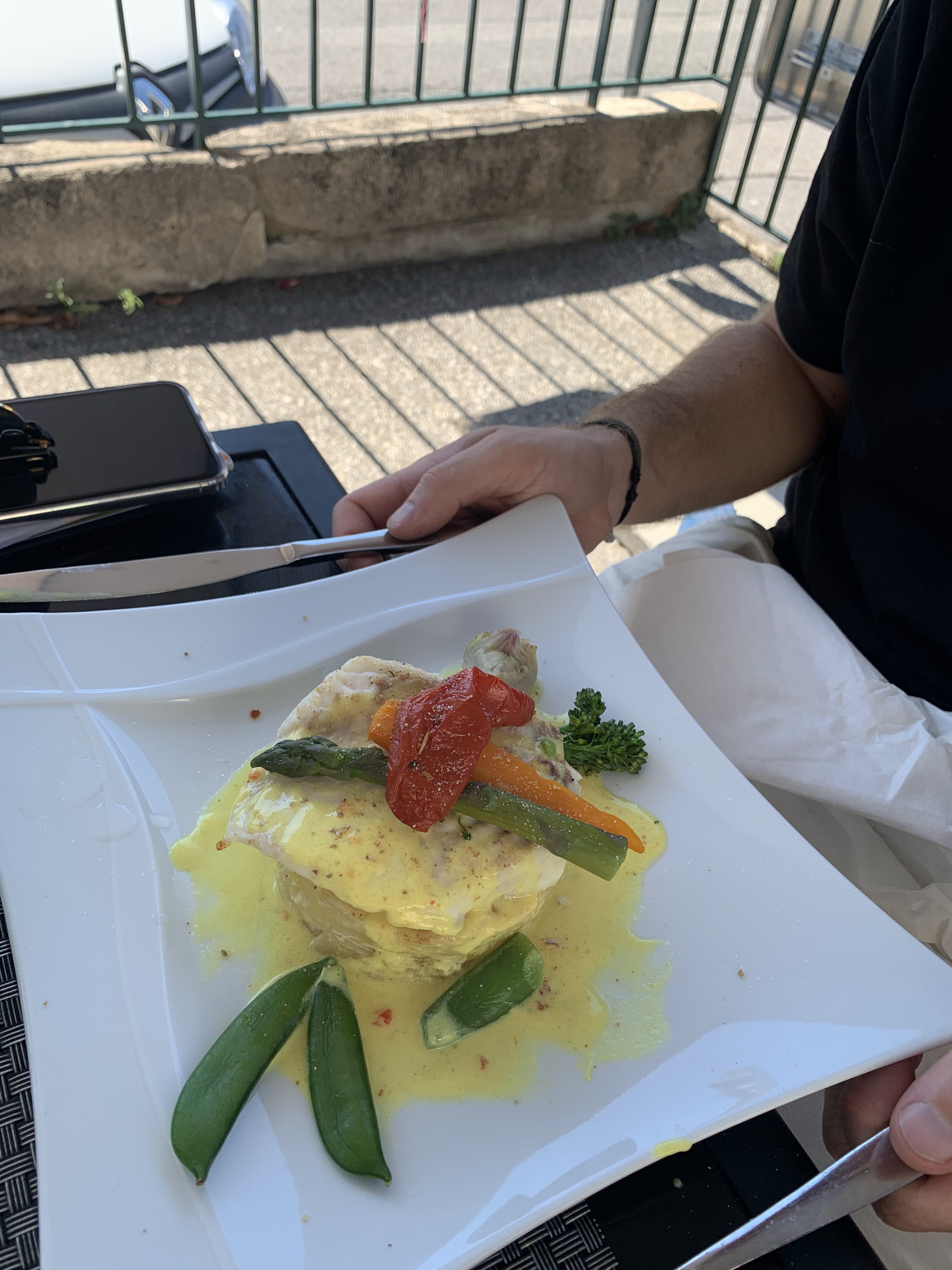 Prix corrects, service assez long, cadre sympa sur la terrasse malgré la proximité route/parking, expérience globalement positive