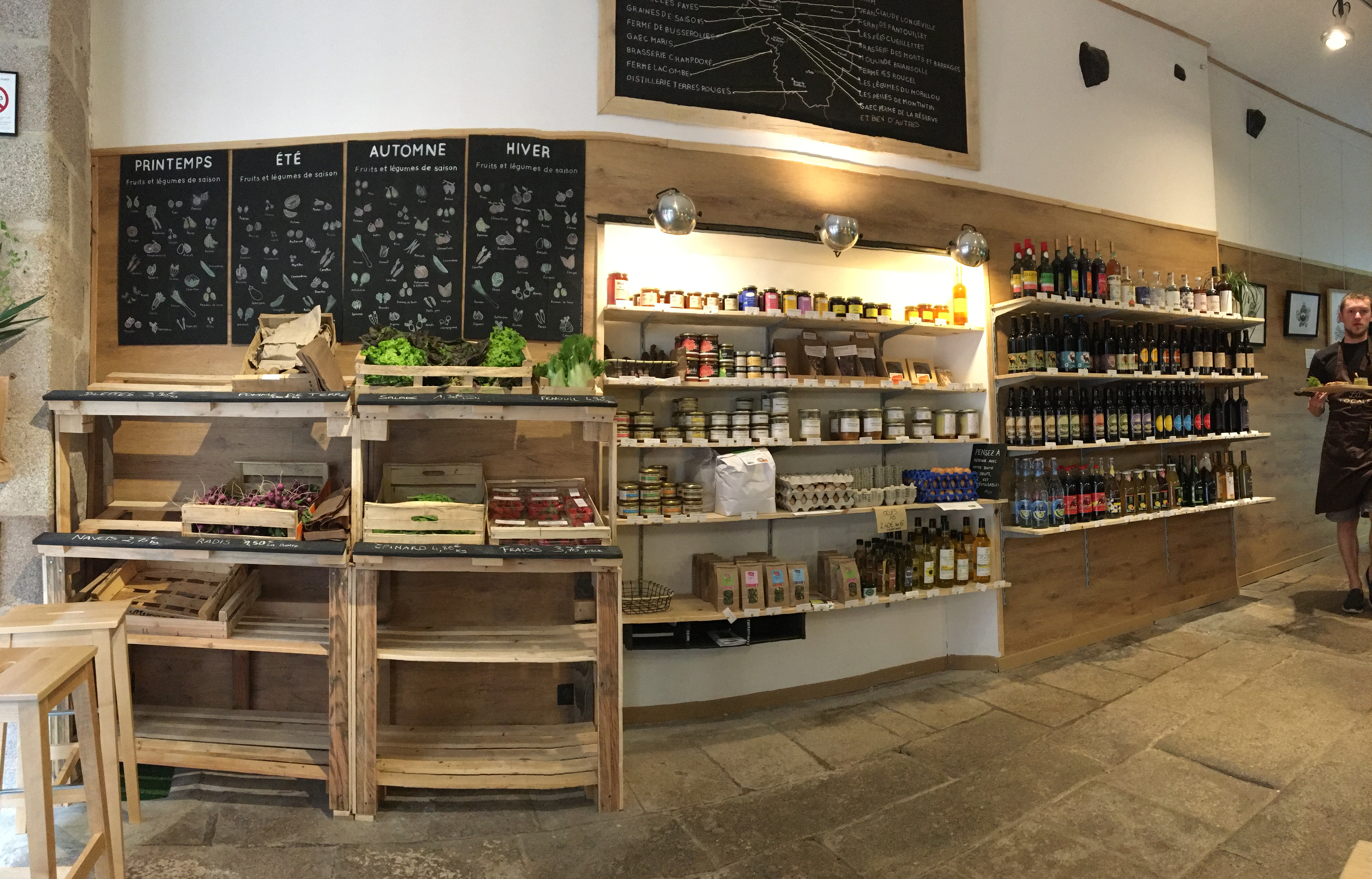 Petite épicerie / bar proposant un large choix de produits locaux et de saison notamment la charcuterie (le saucisson est excellent). La bière artisanale du coin est idéal pour se rafraîchir en terrasse et profiter du Quartier de la Boucherie. L'accueil était agréable et naturel. Je recommande vivement ce genre de petit commerce.