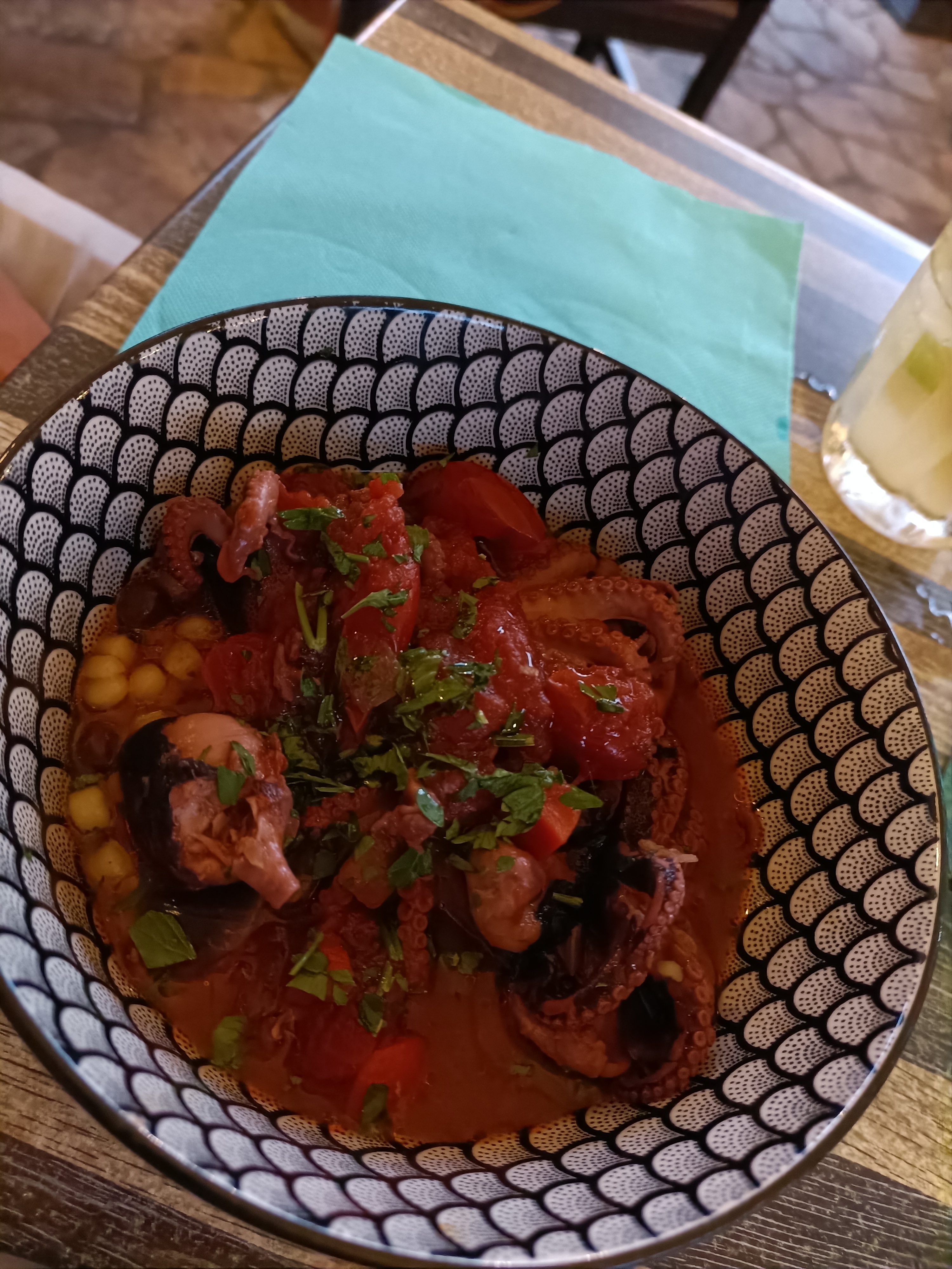 J'ai pu y découvrir des plats que je ne connaissais pas : le poulpe et des brochettes de chèvre... Un vrai régal pour les yeux et pour le ventre Le cadre est super