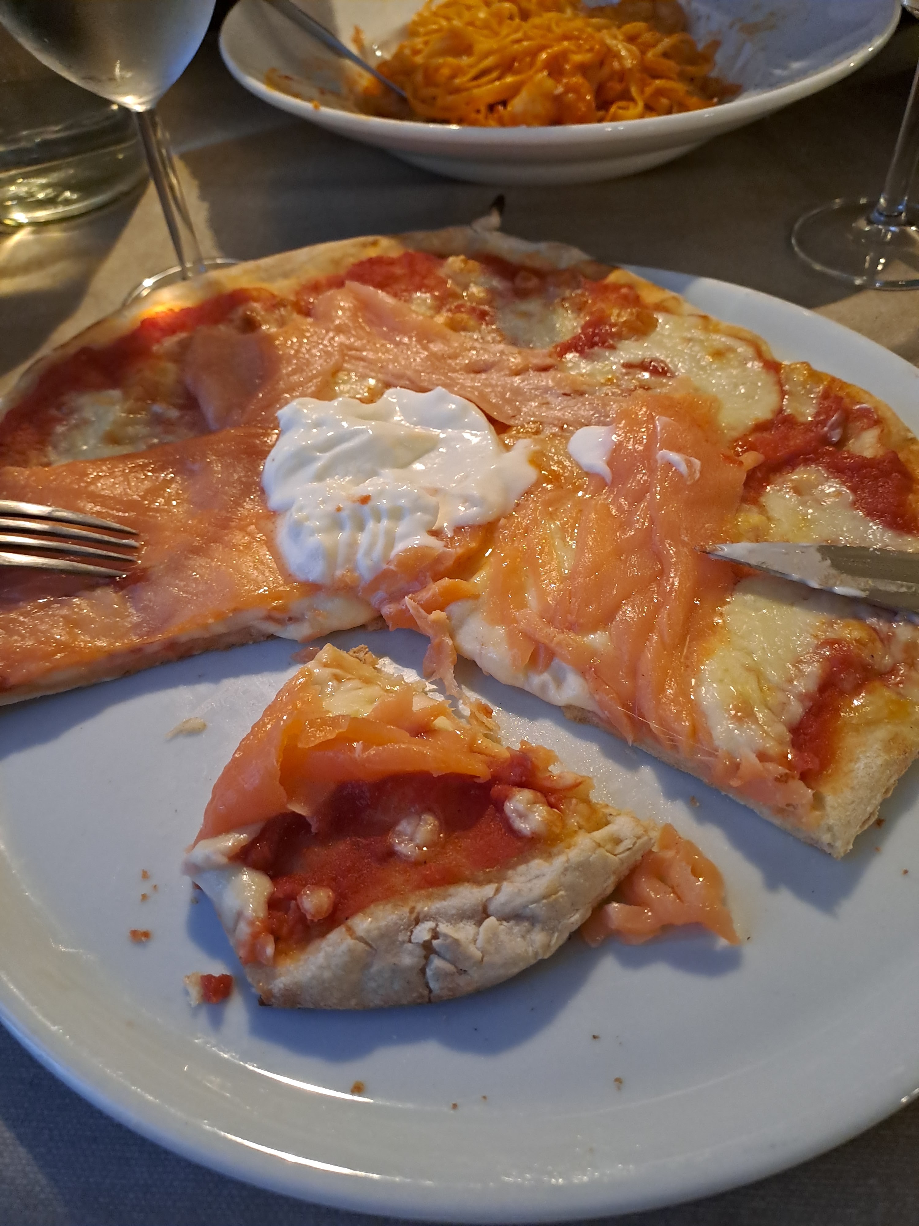 Dîner pour la première et dernière fois, le patron n’est pas aimable, lorsque j’ai demander du parmesan on m’a répondu « laissez moi le temps » , l’ambiance entre la femme et son mari est électrique, le spritz est minuscule pour 8,5€, la pizza pas assez cuite et mon conjoint a été malade toute la nuit après avoir manger les gambas grillées. A 3, dont 1 enfant de 6 ans (demi portion de pâtes bolognaise) presque 100€. Beaucoup trop cher pour une qualité médiocre. Nous ne reviendrons pas et déconseillons même cet établissement.