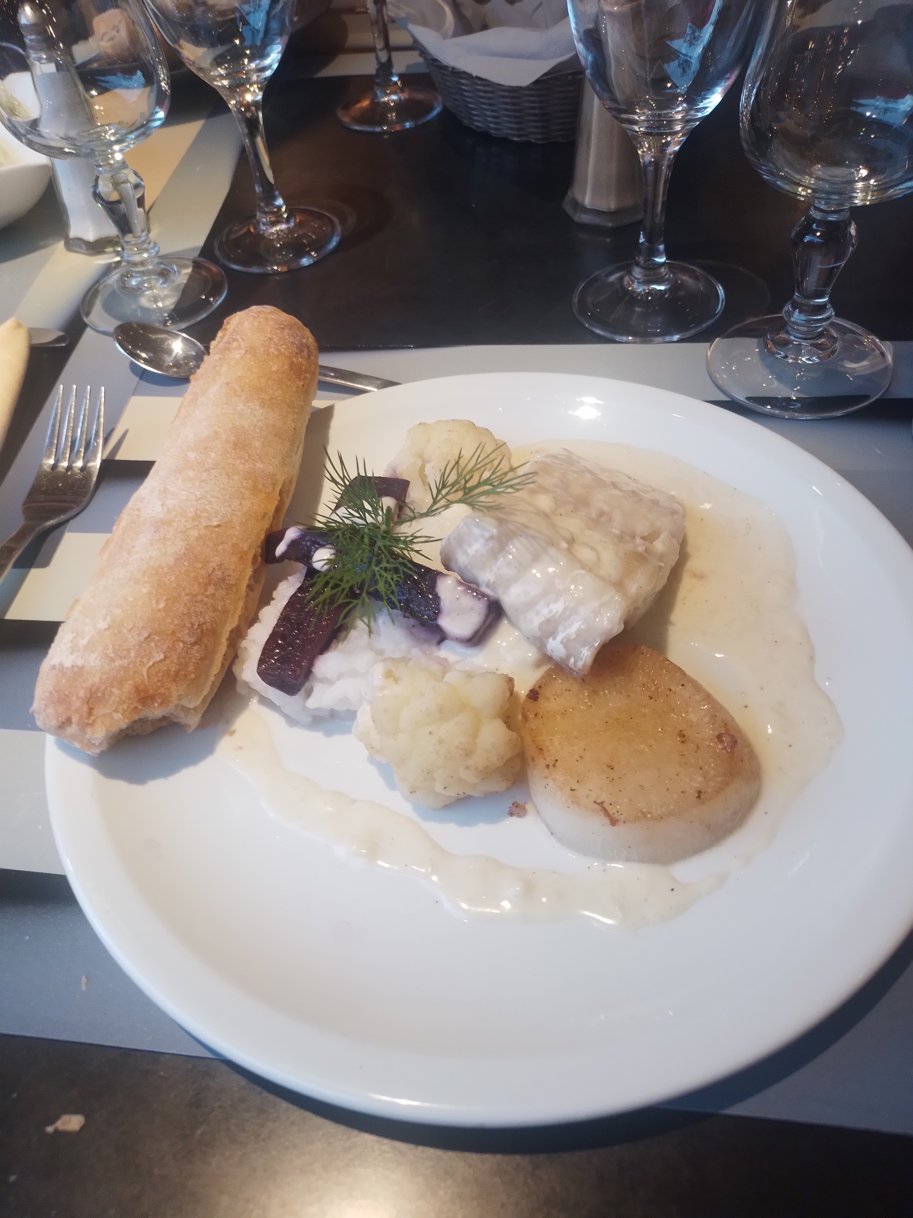 Repas de midi pris lors d'un séminaire...menu au choix. service rapide et efficace et cuisine délicieuse! je recommande!