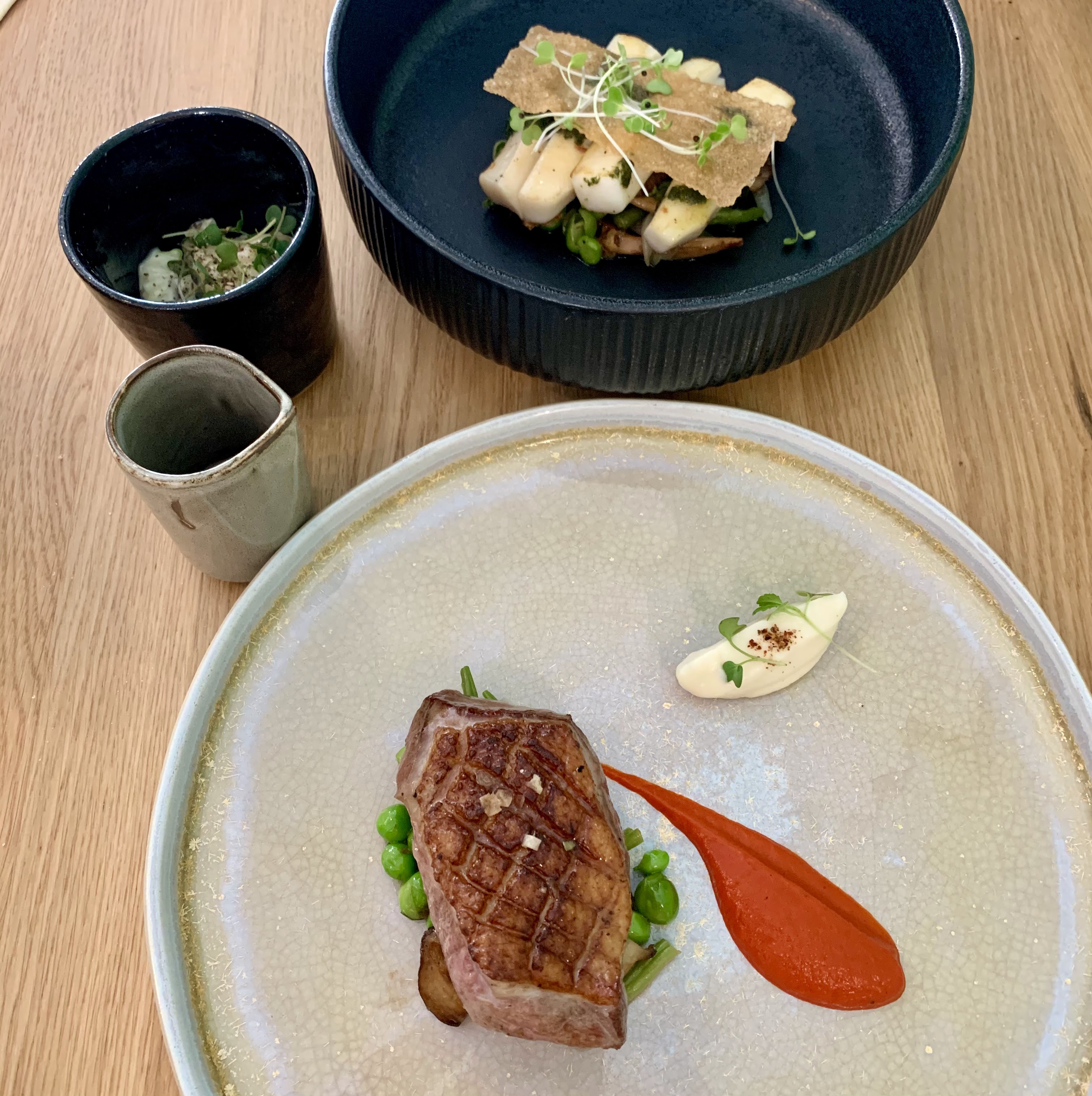 Très bonne expérience. Le serveur nous a expliqué chacun des plats avec des détails très intéressants telle que la provenance des produits, etc. Des échantillons de plats nous ont été proposés en plus. Le lieu est très joli et bien décoré. Les quantités restent petites mais pour une qualité extrême. Je recommande ce restaurant !