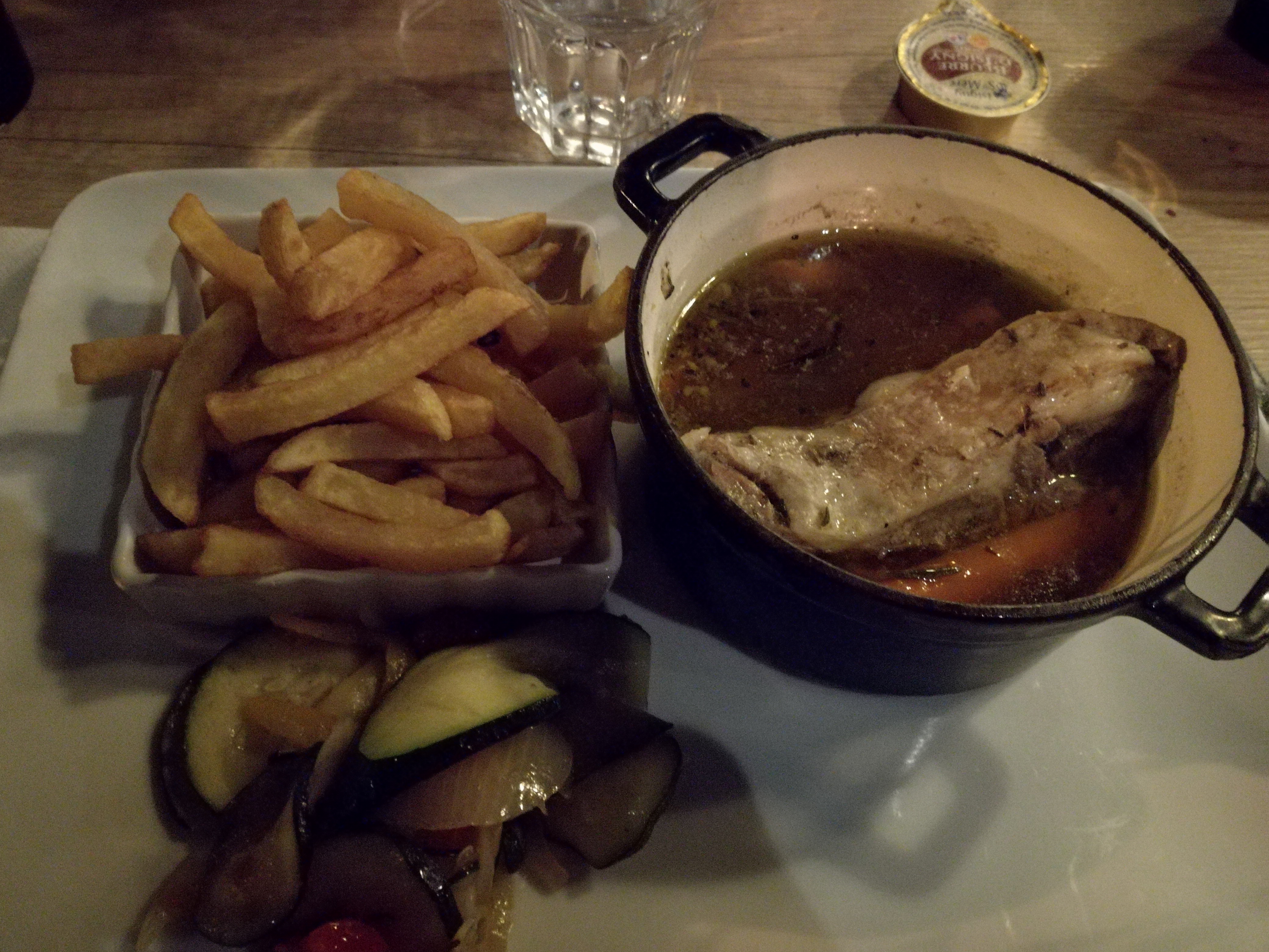 Plat du jour très bon marché, pot au deu ce jour la, et excellent ! Cadre agréable, service cordial et aimable.