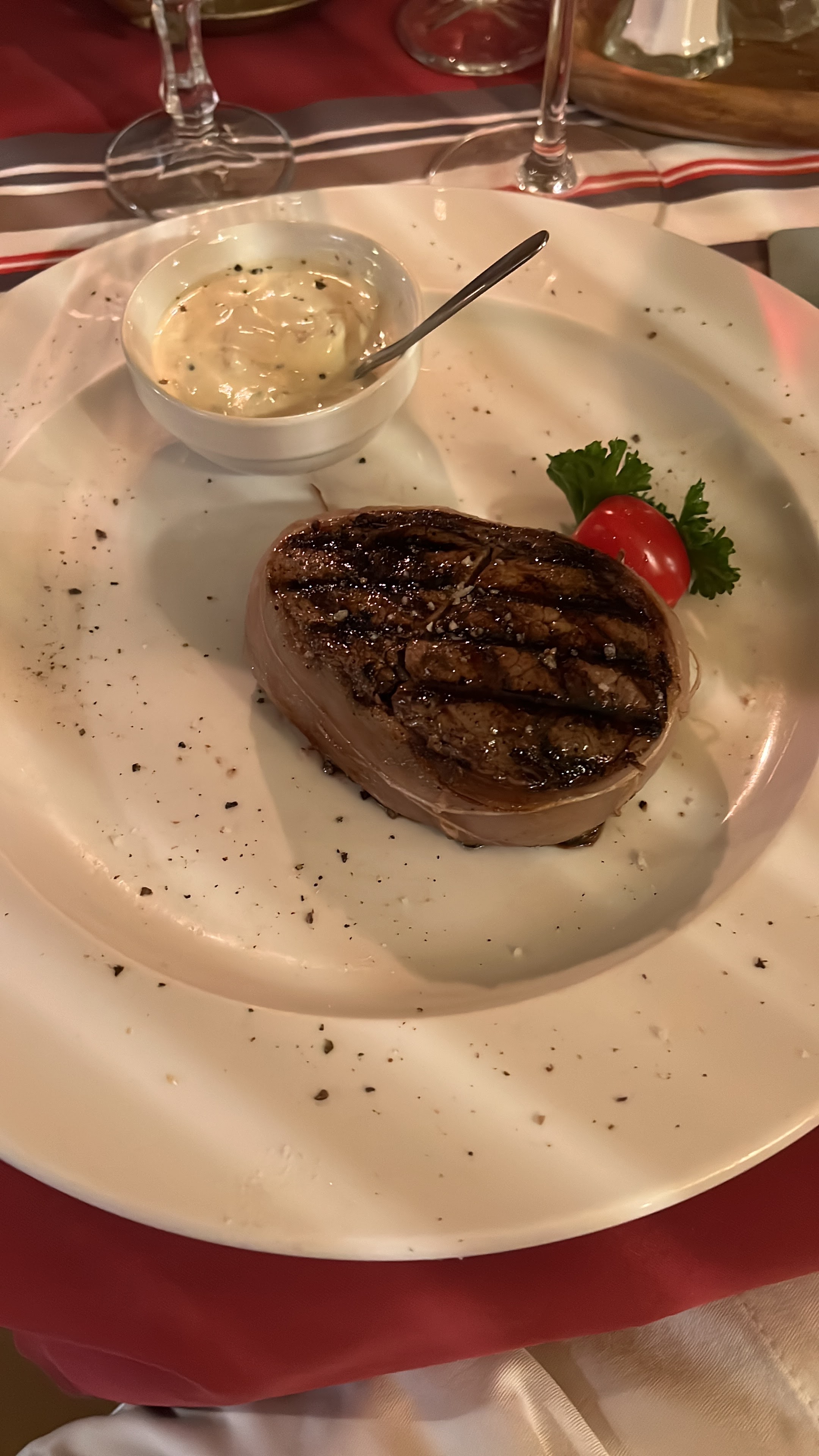 Belle viande ; j'ai particulièrement apprécié le service et les assaisonnements à l'huile d'olive avec ou sans ail. Est-ce cher ? Disons que là où nous sommes, en cette saison, rien n'est bon marché. Il s'agit pour le restaurateur de vivre de son métier, et pour le client de savoir ce qu'il veut, mais je n'ai rien vu d'exagéré ici ce soir-là. Merci pour la belle expérience.