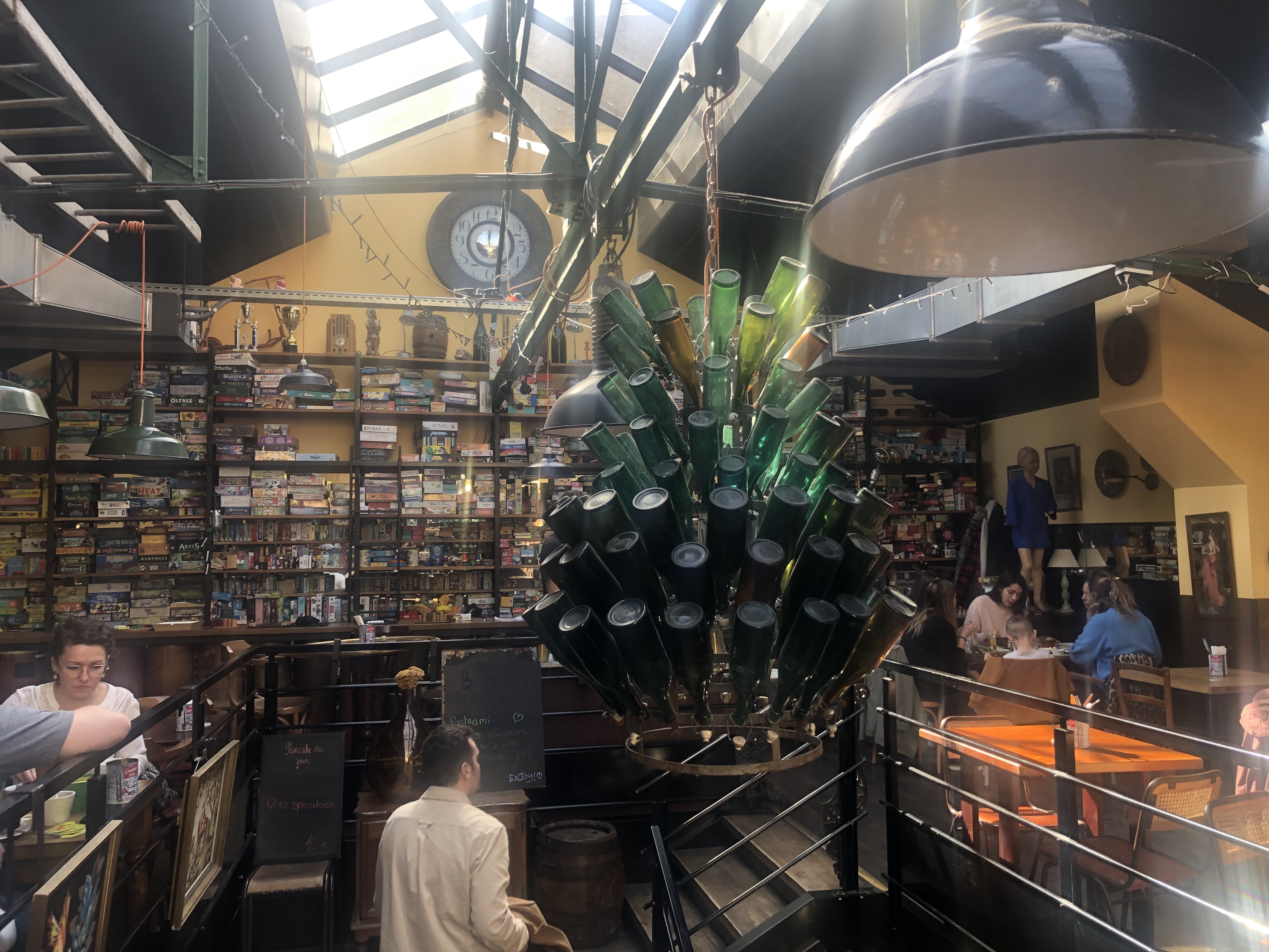 Concept vraiment intéressant, large choix de jeu et un lieu vraiment beau et chaleureux, malheureusement la nourriture laisse a désirer, plats froids, chers et pas spécialement très bons, mais tout de même sympa