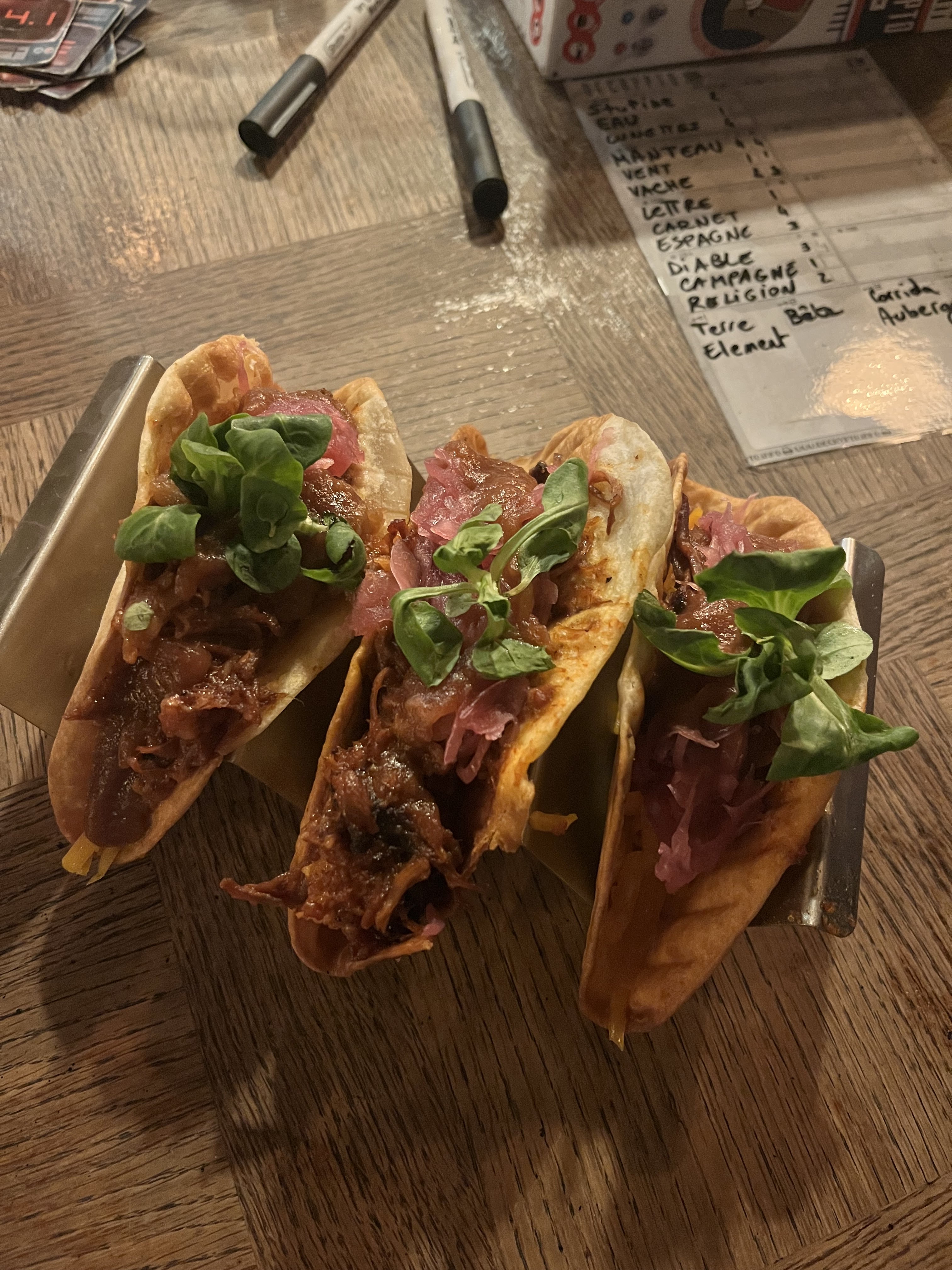 N’ayant jamais fait de bar à jeux avant celui ci, je ne connaissais pas du tout ce concept simple et efficace du jeu de société autour d’une bonne bière. Les serveurs savent autant vous mettre à l’aise que de vous conseiller sur quel jeu choisir. Un énorme choix de jeux est disponible, difficile de choisir ! Que vous soyez avec des amis proches ou de simples connaissances, le mélange jeux / boissons / plats est le combo gagnant pour une soirée mémorable et pleine de fous rire. Concernant les plats, la poutine est un délice. On notera qu’elle ne respecte pas la poutine classique avec du fromage skouik skouik mais le cheddar à la place fait l’affaire. Par contre, pour une expérience de saveurs optimales, je vous conseille de prendre tous les suppléments (viande hachée, bacon, fromage et légumes pour la bonne conscience). Les frites ne baignent pas dans la sauce, le mélange est harmonieux (pas facile pour une poutine, on tombe facilement dans l’écœurant). Merci à tout l’équipe pour ce bon moment, bien que la fermeture à minuit ne nous ai pas permis de finir notre partie de jeu …! 🤭
