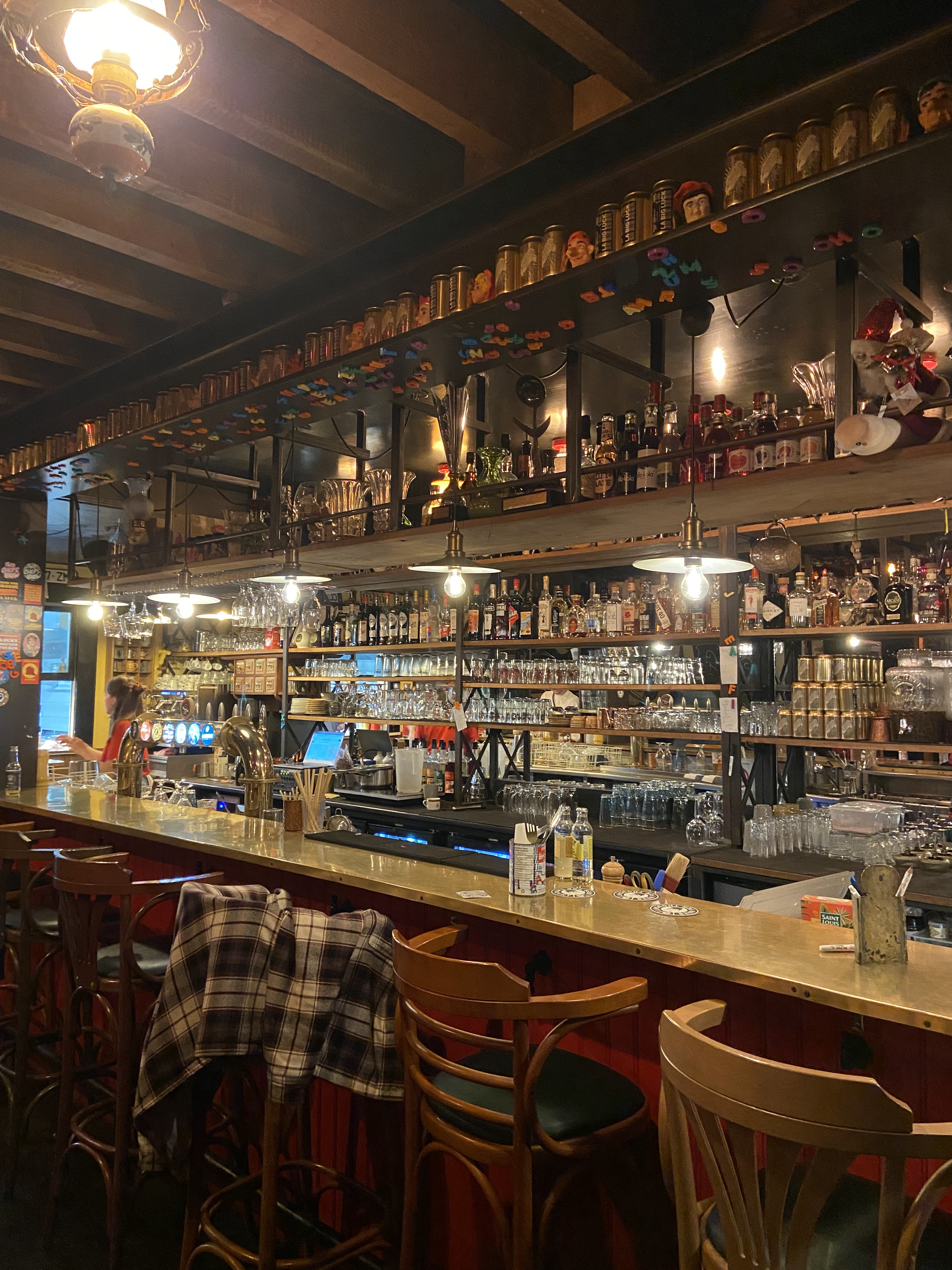 Venues boire un verre vers 18h on nous dit qu’il ne faudra pas rester trop longtemps pour libérer la place avant le rush, ok nous n’avions pas prévu de rester plus. Par contre de payer 9€ une bière rouge en canette de 33cl c’est vraiment honteux, surtout que ça n’a pas été annoncé lors de la prise de commande et les bières « bouteilles » n’ont pas de prix indiqué sur la carte . C’est clairement du vol pour moi !