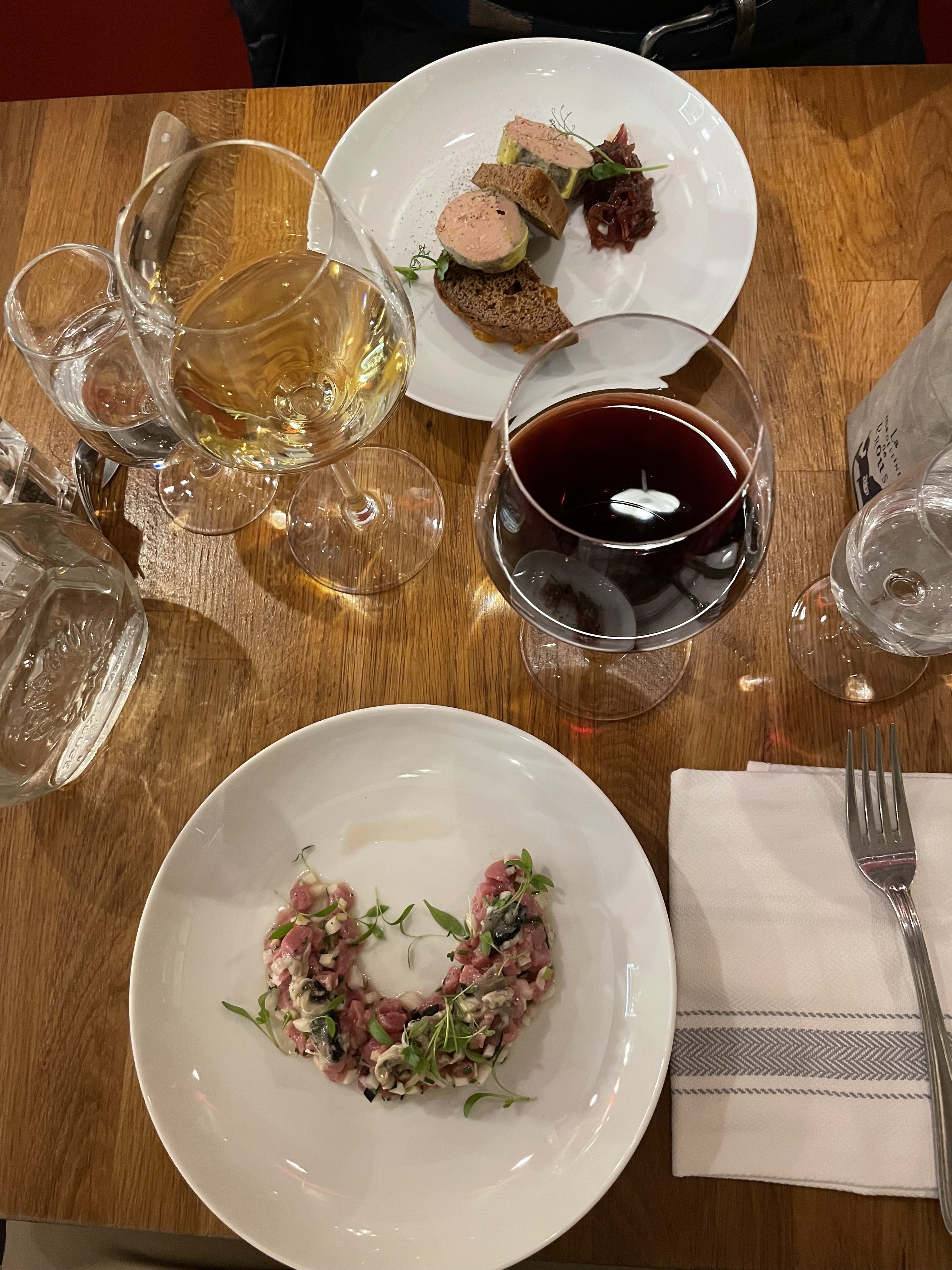 Ce 4/5/2024 j’ai fêté mon anniversaire dans ce bel établissement Le lieu est superbe , simple ,cosi on s’y sent comme à la maison , on y est très bien installé , l’accueil est celui que vous auriez chez des amis , sincère et franc ☺️ Le service est au TOP jamais d’attente au petits soins sans vous presser . La cuisine est succulente tout ce qui est proposé on vous explique d’où ça vient qui le fait , on sent la passion l’envie de raconter de faire plaisir de donner envie 🤩🤩🤩 Et alors le bonus . Ce sont les vins !! d’habitude on se fait « matraquer » Et Là ce n’est pas le cas !! Toutes les régions sont à la carte que du bon voir du très bon!! Mention spéciale pour l’armagnac je vous recommande le millésimé , une tuerie !! En résumé cet endroit c’est mon coup de cœur 2024 , ceux qui le font vivre , ce qu’on vous sert ……bref on se sent à la maison et tout ça dans un budget maîtrisé sans chichis🤩🤩🤩 Foncez !!