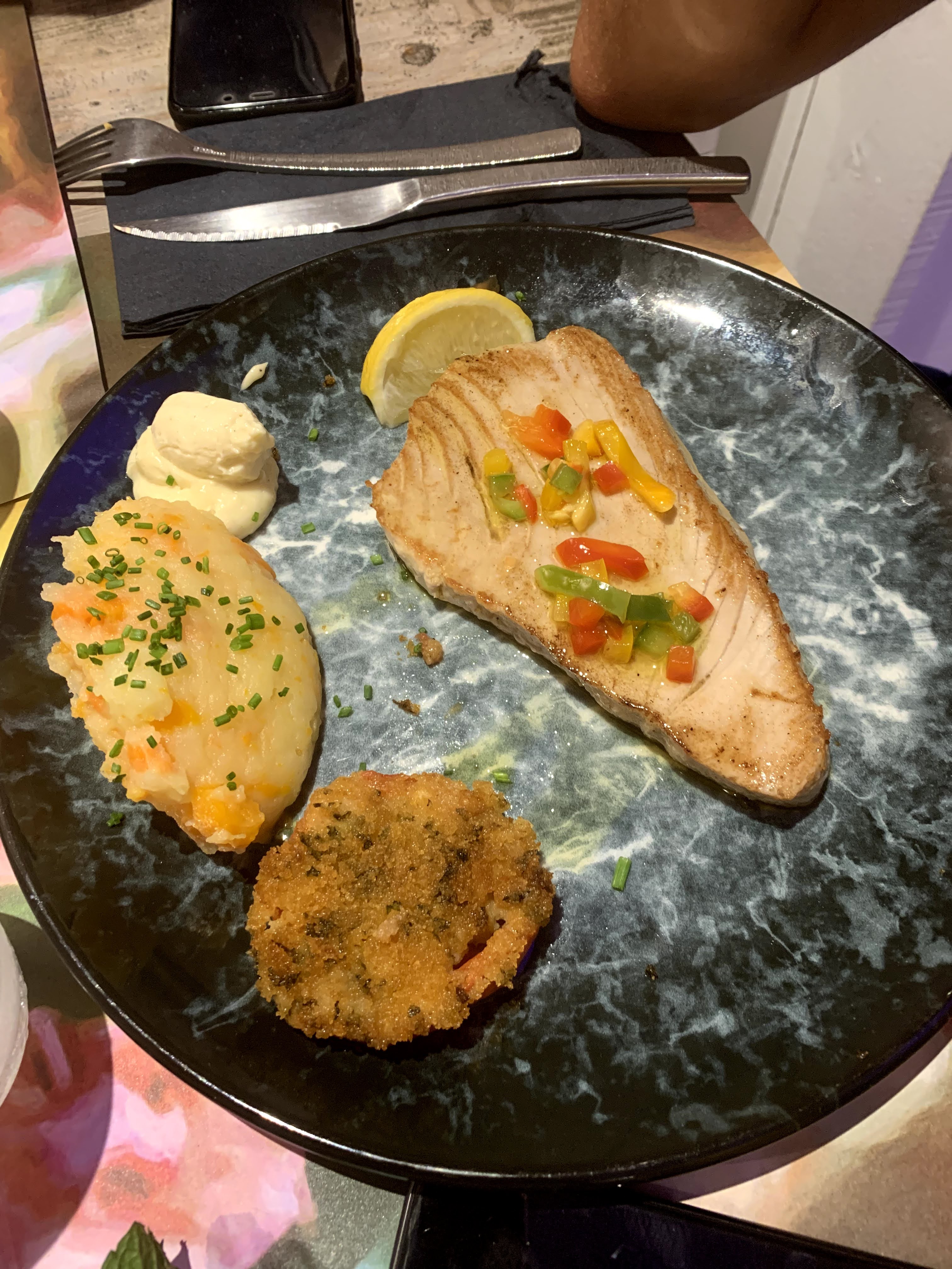 Personnels très sympathique. Les plats sont bon et bien présentés. Par contre ils ont la main lourde sur l'ail pour les sèches et la lotte aux agrumes cuites au beurre c'est plutôt moyen et un seul quartier de pamplemousse c'est pas top. Mise a part cela c'est me semble t il une bonne adresse