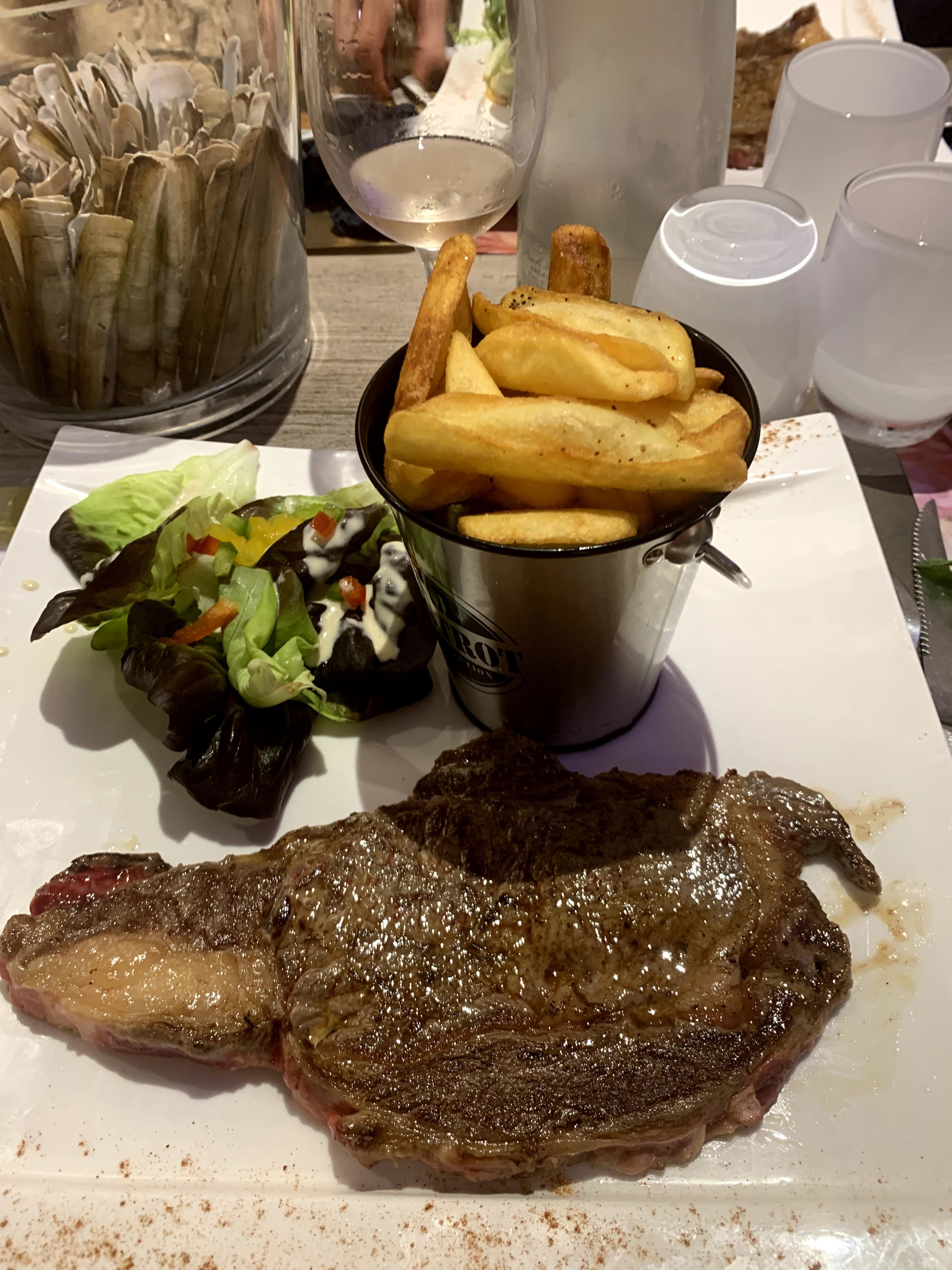 Qui dit « vacances » dit regroupement familial chez la tante du 34. C’est donc à 10 que nous choisissons de dîner dans ce restaurant pour célébrer l’anniversaire de l’une des nôtres. Installés, on nous délivre 3 cartes du menu pour 10 personnes. Notre sélection des plats devient donc vite anarchique du point de vue du serveur, en plein rush, qui attend plus de discipline de notre part. Mais, même s’il en bave celui-ci reste pro : convivial mais ferme. On s’est parfois sentis coupables de demander plus d’eau ou une autre boisson parce qu’on le voit bien : il n’a que 2 bras et que 2 jambes… Les portions sont bien fournies. Des produits de qualité et bien préparés. Un régal pour les papilles qui mériterait de pouvoir prendre le temps d’être savouré, (sinon ça tourne au chalenge pour l’estomac). Nous sommes repartis repus… amusés par cette soirée d’anniversaire un peu inattendue. Merci et bon courage à tout le staff!