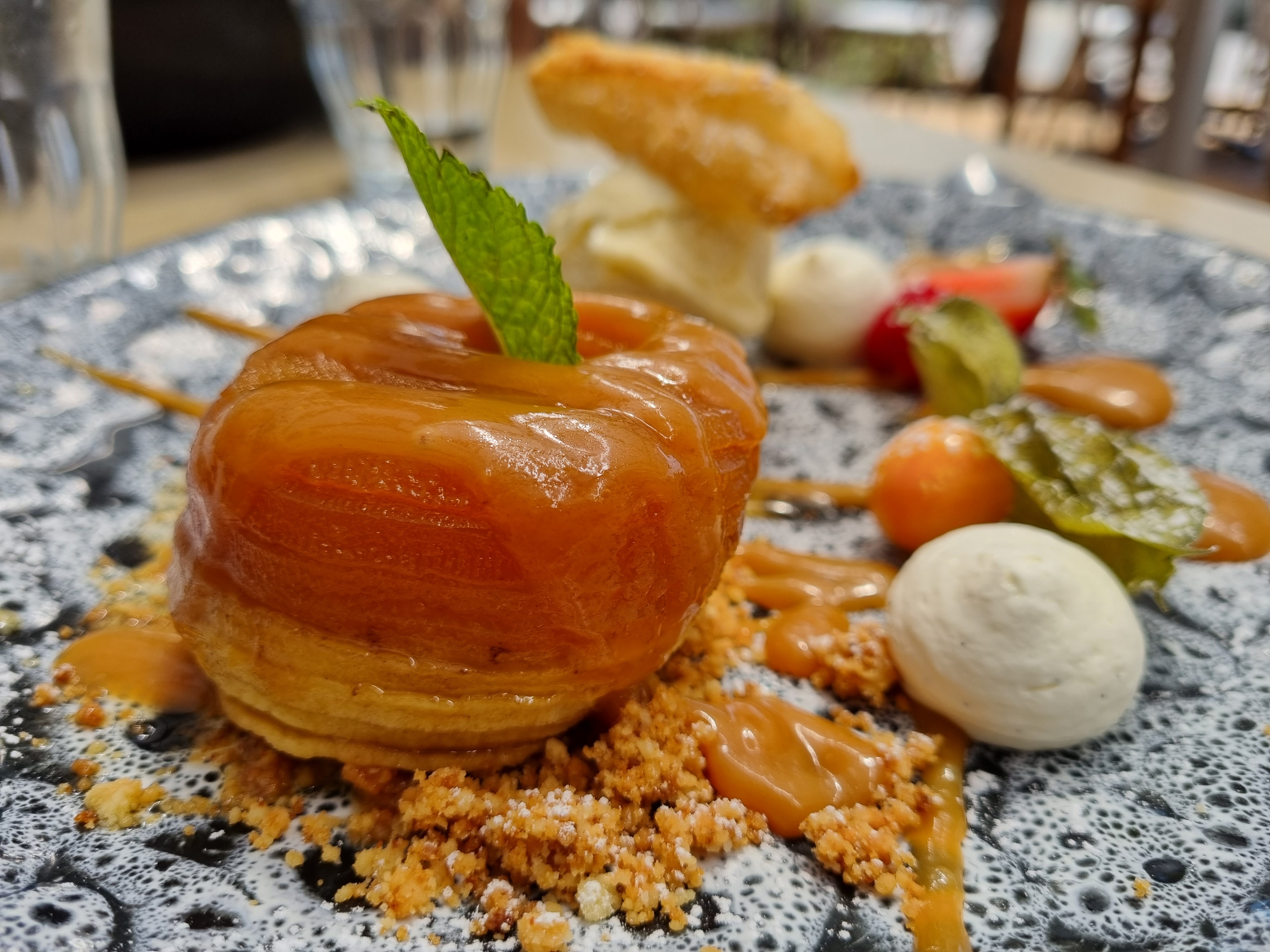 Très bon Bon accueil Un dessert pomme cuite au four façon tatin glace crème fraiche a tomber Je recommande