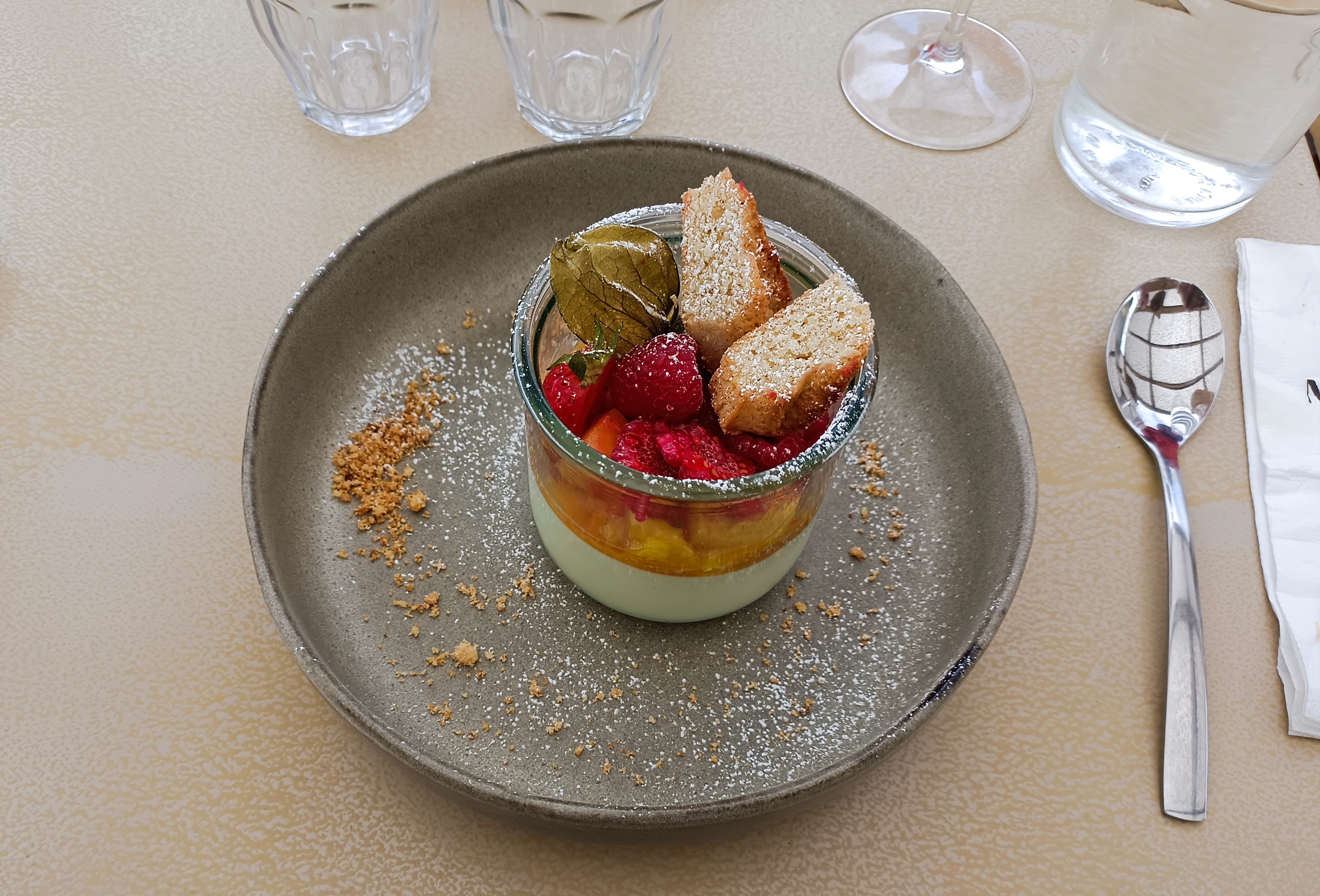 Parfait dans l'assiette. Parfait à l'accueil. Un très joli moment. Vivement le soleil pour profiter de la terrasse.