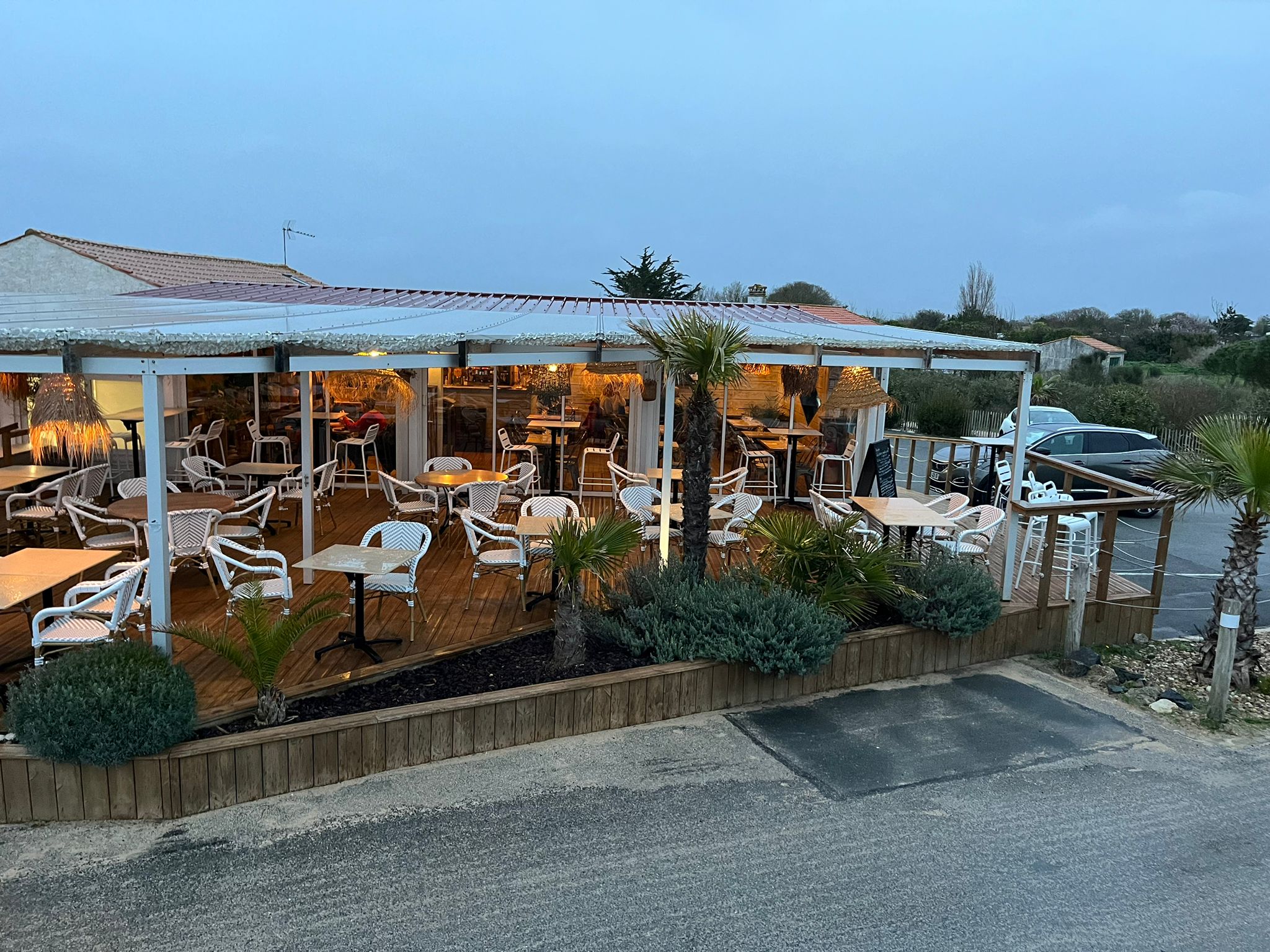 Lieu sympa o bord de la plage, prix assez élevé quand même pour ce qui est proposé, ce qui est vraiment dommage c est qu il ne prenne pas les chèques vacances surtout dans un secteur touristique