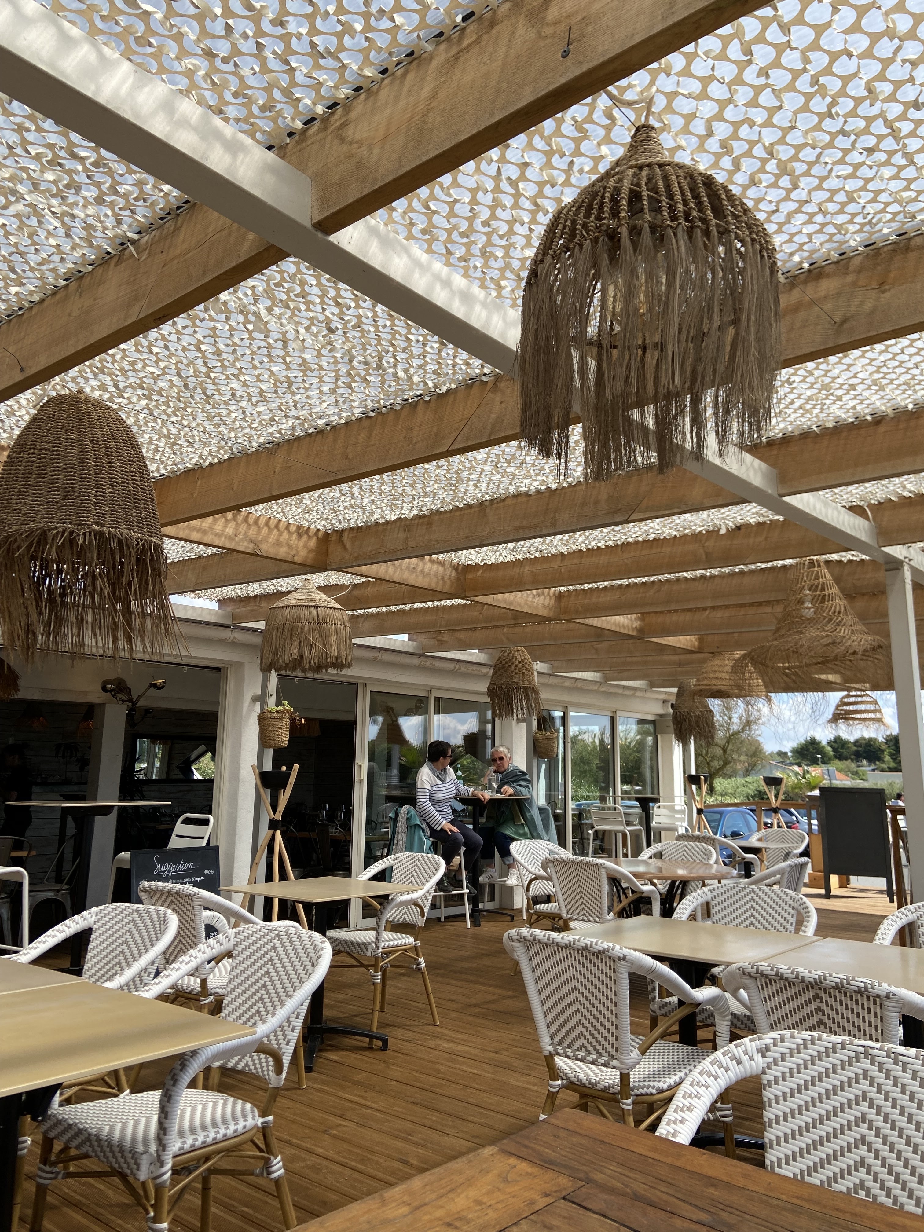 Très grande terrasse avec mobilier sympa. Le personnel très souriant et aimable. Les plats excellents. A noter toutefois que la mousse au chocolat n'a pas supporté les fortes chaleurs ; elle est devenue liquide... A refaire mais pas sous 37° car la terrasse devient une étuve sous le plexiglass.