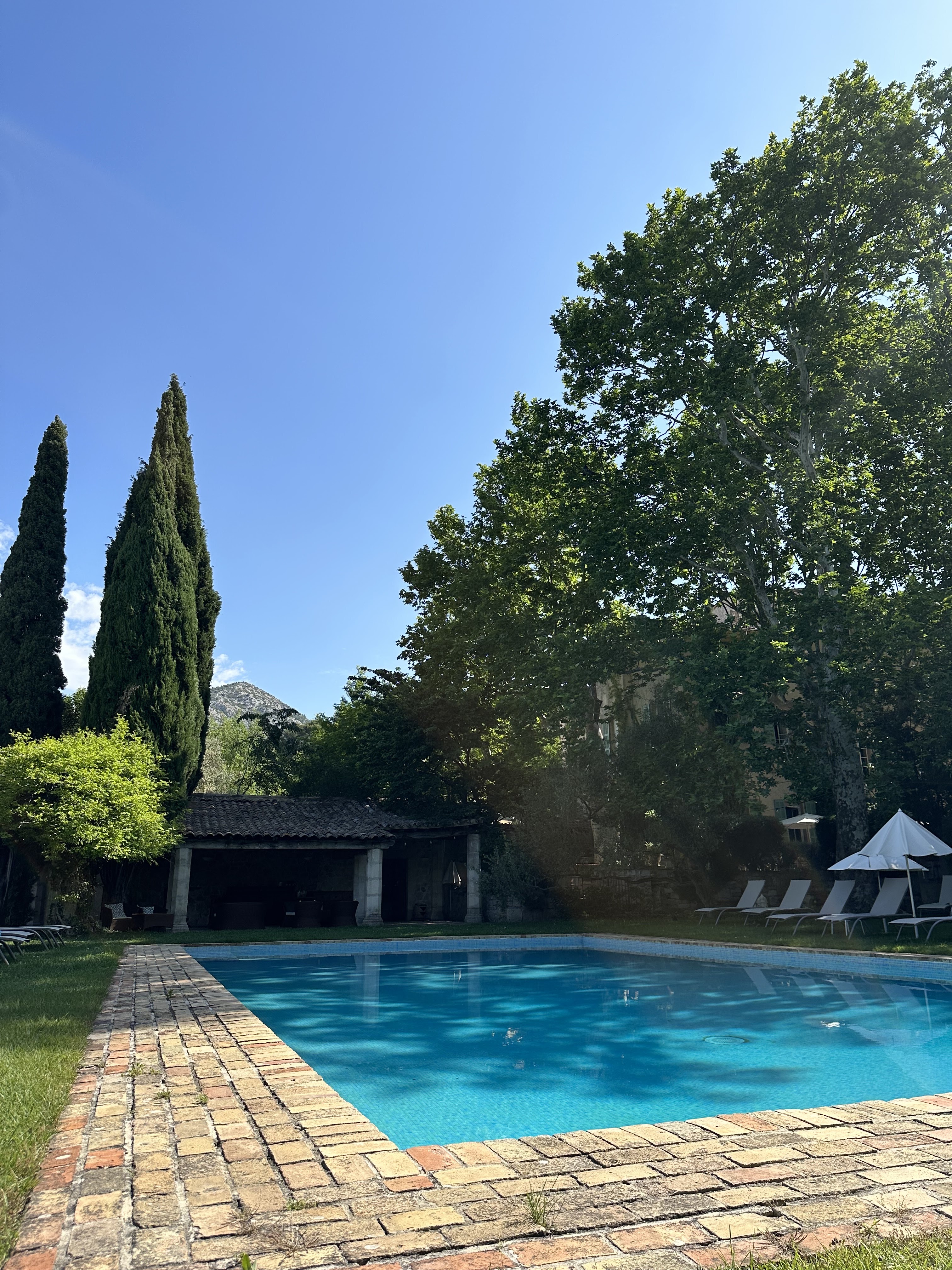 Lieu très agréable ombragé avec une grande piscine un jacuzzi un terrain de pétanque de nombreuse chaise longues pour pouvoir ce prélasser au soleil. Les chambres sont spacieuses et très bien équipés avec de magnifique salle de bain en marbre en vert, des matelas très confortable, service de chambre impeccable. L'hôtel dispose d'un petit assenceur qui va jusqu'au deuxième étage (en tout il y a trois étages) mais quand même pratique. Pour le restaurant cuisine maison raffinée petite carte mais les plats sont tous fait maison et tous excellents, service très agréable. Petit déjeuner avec un très grand choix de viennoiseries mais aussi de salés cuiseur à œufs jus de fruits...