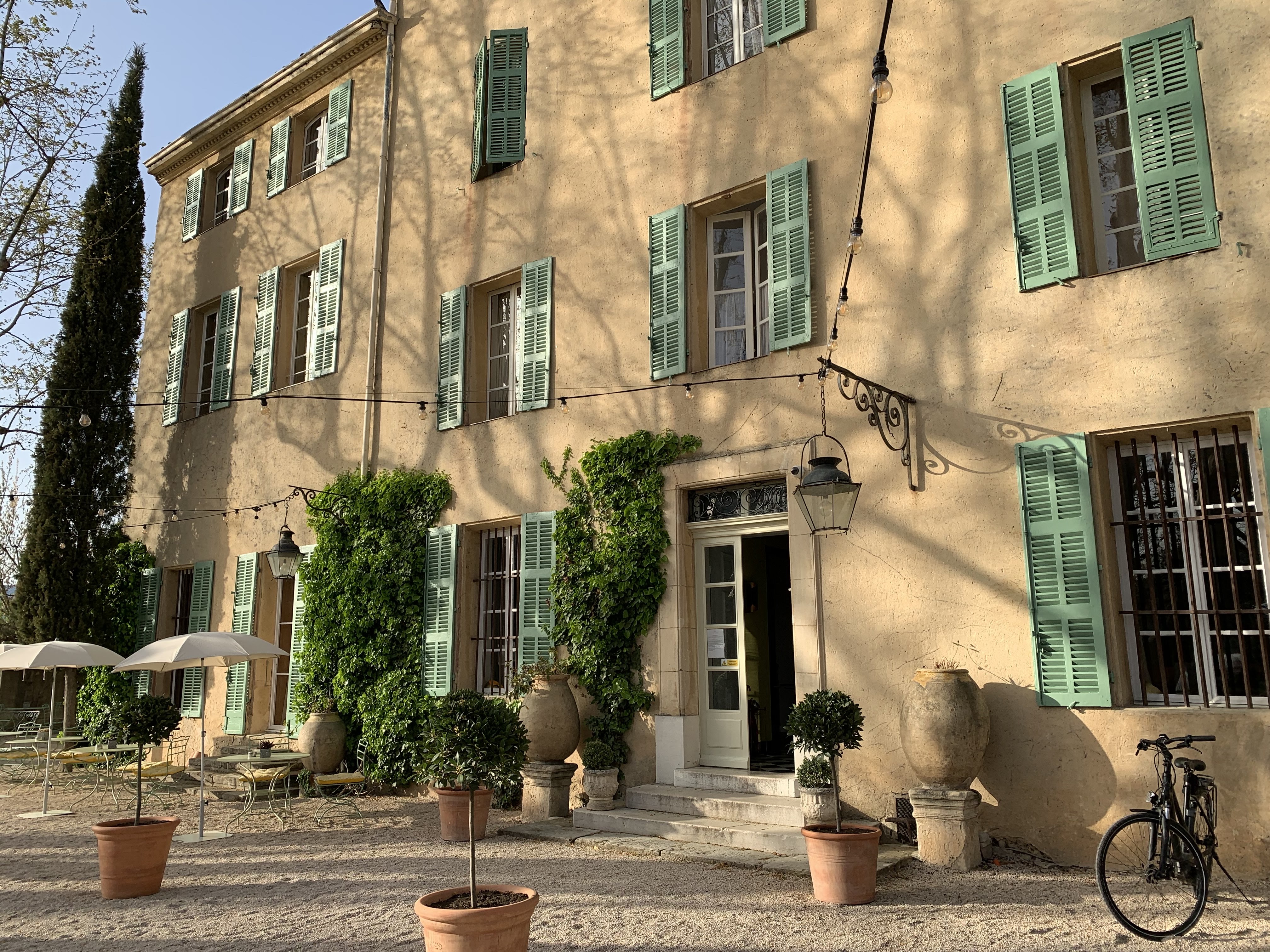 Le cadre est tout simplement magnifique ! Cadre provençale, relais typique de la vie provençale dans un endroit calme. Nous avons séjourné 4 jours dont 3 nuits. Les chambres sont très spacieuses mais attention certaines ne sont pas climatisées. Le personnel est très accueillant et au petit soin. Le restaurant est également excellent. Bref, lieu fortement recommandé.