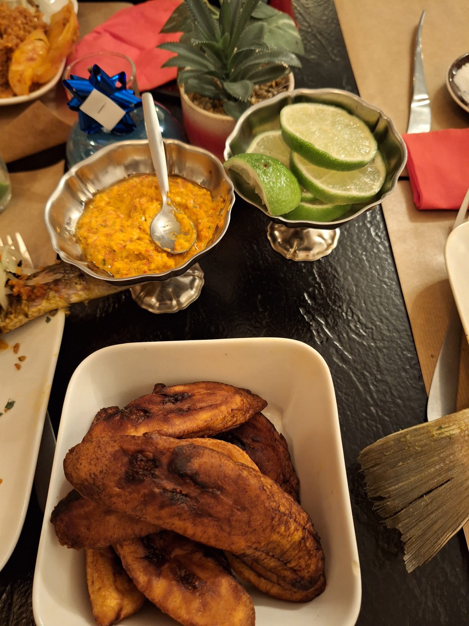 Nous avons passé un excellent repas en amoureux : les plats étaient riches en saveurs, les assiettes copieuses, les boissons surprenantes, l'accueil agréable et le tout pour un prix plus que raisonnable ! Je recommande d'essayer le poisson Malangwa avec des bananes plantain, un délice !