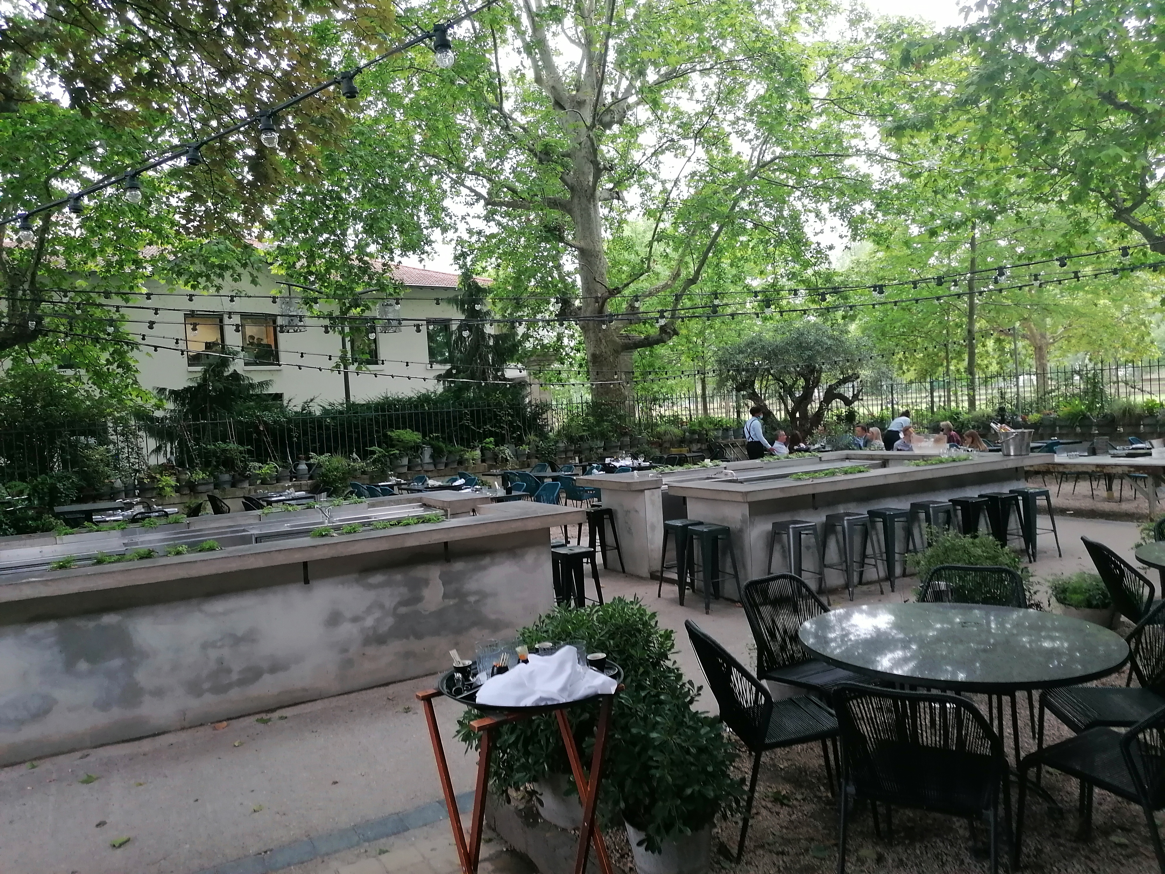 Tellement déçue ! La maison est un très bel établissement, son cadre est sublime surtout l’extérieur avec ses arbres centenaires en guise de pergola naturelle et ses 2 bars centraux. L’ambiance est top! La bande son pendant le repas est parfaite et le DJ en fin de soirée pour danser toute la nuit impeccable 👌 Mais alors… la cuisine ! Fuyez! Hors de prix, présentation trop simpliste et (désolée) mauvais. 17€ un bouquet de crevettes (4) …même pas décortiquées et sans présentation … 21€ un coeur de saumon … présentation catastrophique… Et le steak de thon a 32€ plein d’huile d’Olive….fade et gras. Il y a une armada de serveurs qui manque un peu d’organisation… arrivées à 20h nous avons été servis à 21h45 pour l’entrée. Bref endroit enchanteur pour y boire un verre ou en after. Comme c'est le seul endroit de Lyon «ambiancé »… c’est toujours plein Je dois le reconnaître, nous avons eu un verre offert pour dédommagement néanmoins si j’avais lu les avis j’aurais jamais emmener mes amies. On me l’a recommandé cependant la personne ce la fait plus d’1 an qu’elle n’est pas venue…