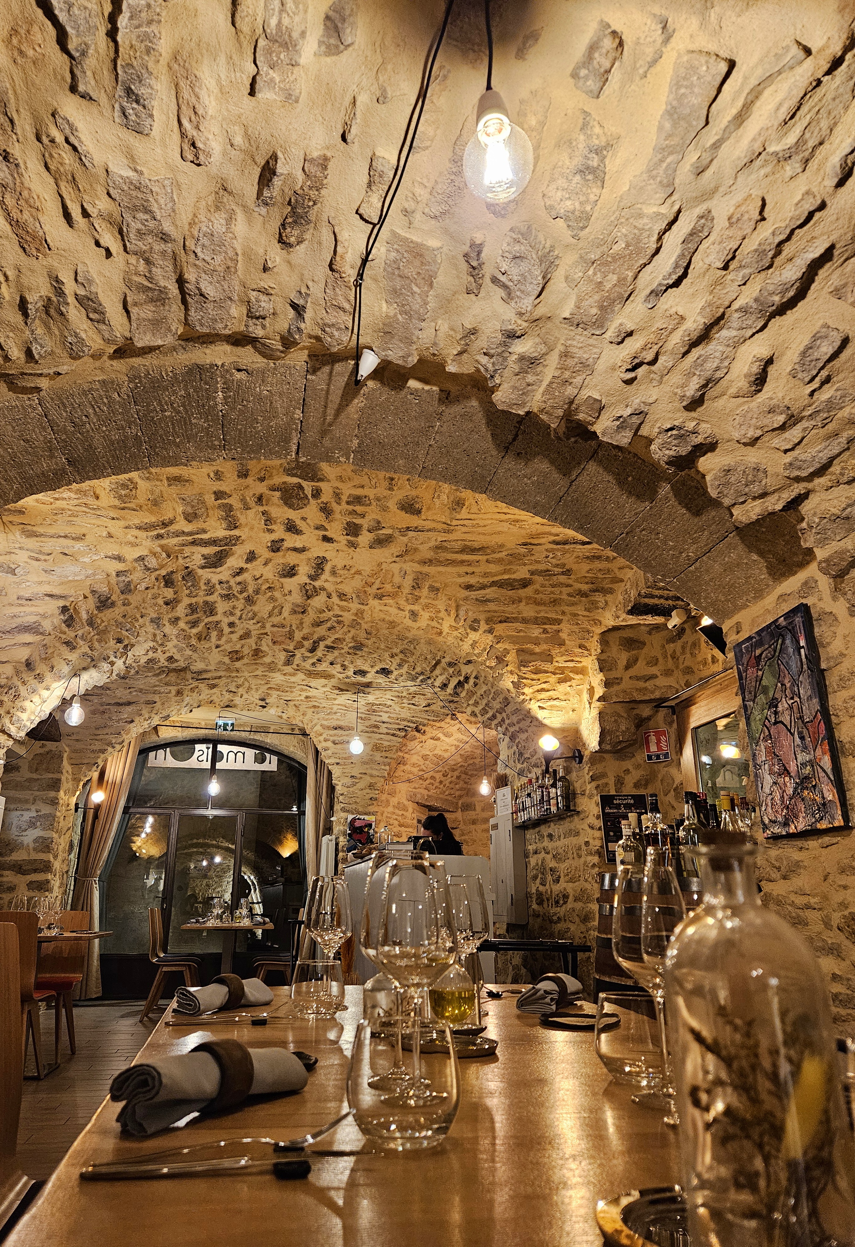 Cadre super, bâtiment en vieilles pierres avec cave en sous-sol visible par une dalle en verre. La sélection des vins est large. La cuisine cuisine est raffinée et délicieuse. Merci à ce couple pour l'accueil et la cuisine.