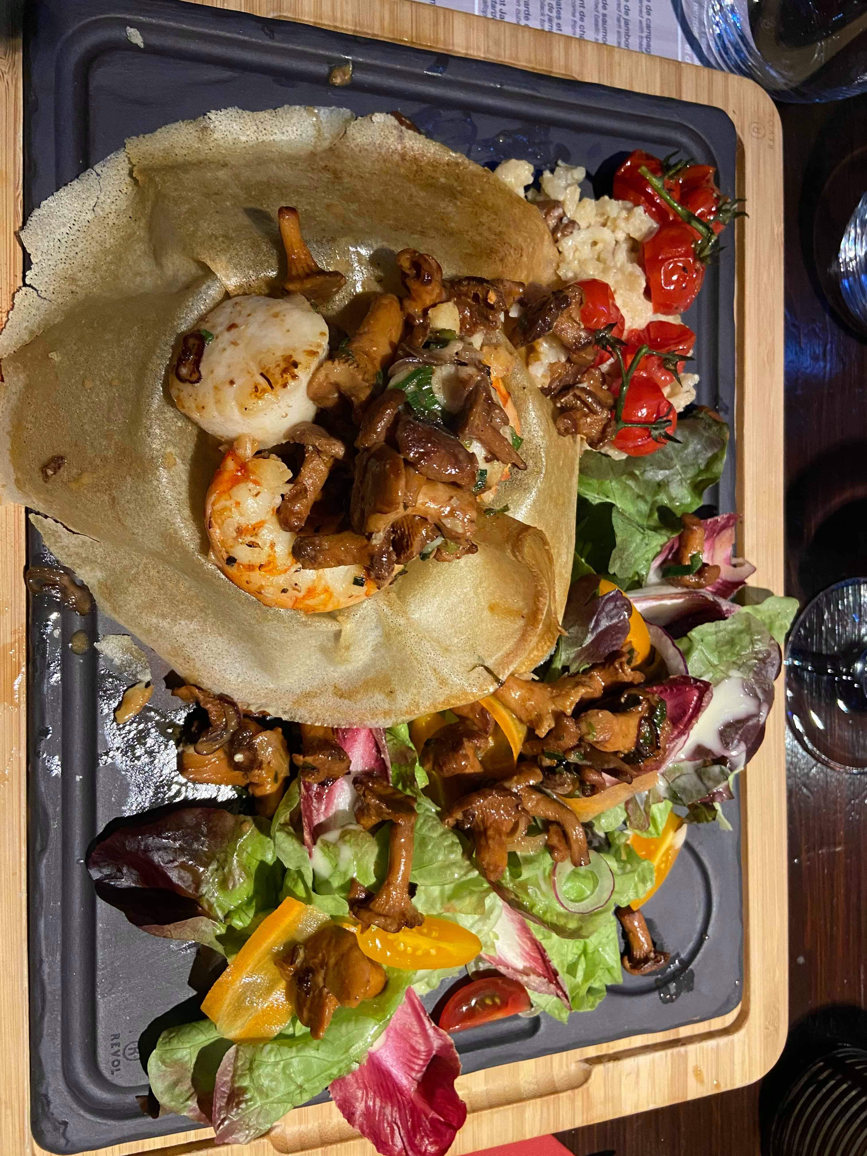 Accueil très agréable. Service soigné. Avons pris 2 chapeaux qui était très bien. Seul bémol, le fromage fumé, bon mais quelques croûtes en trop. Nous recommandons quand même !