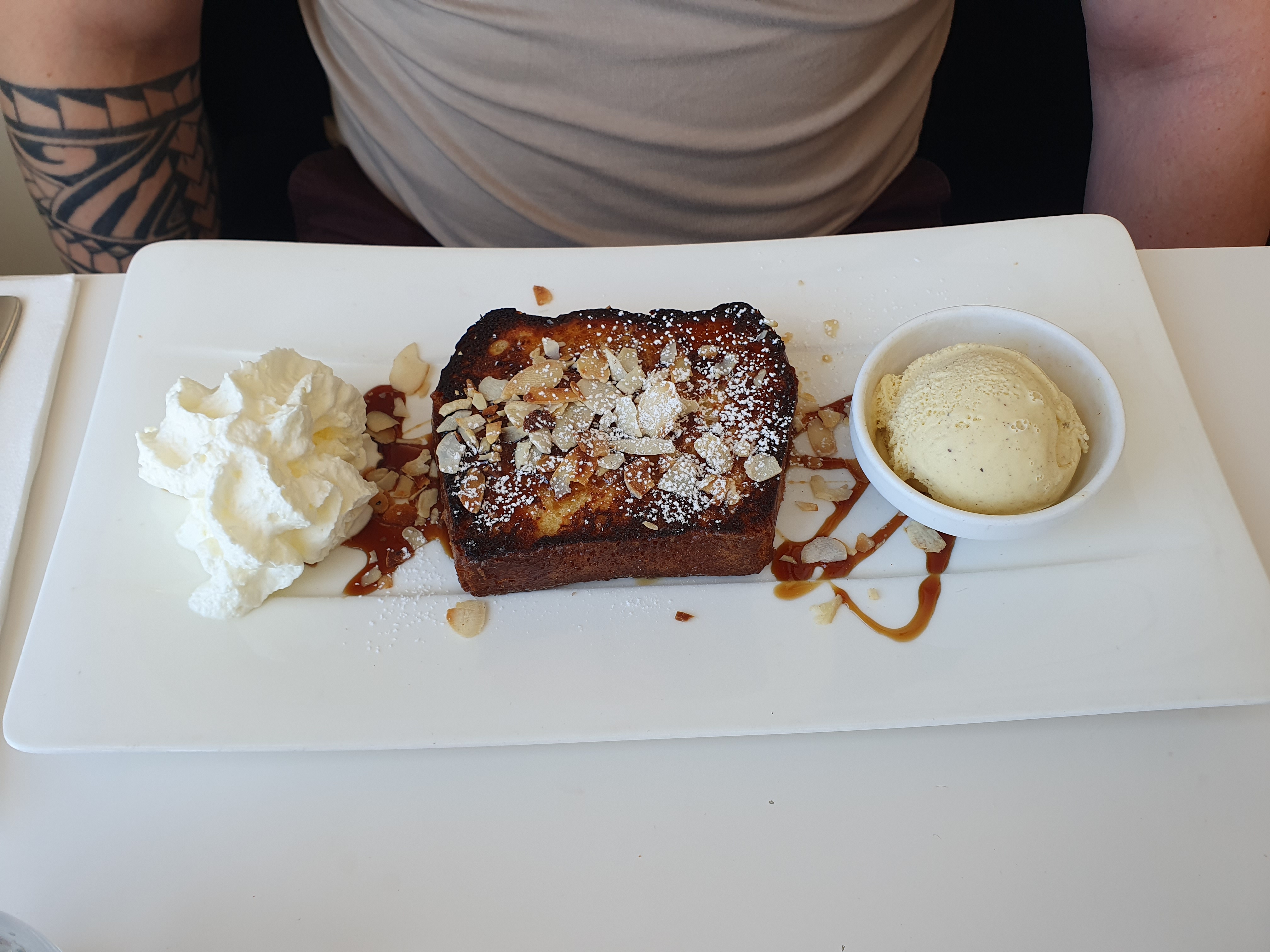 Nous n'avons pris que des glaces mais cela faisait très longtemps que je n'en avais pas mangés d'aussi bonnes, c'est pourquoi je poste cet avis. Le service fut assez long et les fauteuils d'extérieur situés sur la terrasse ne sont pas pratiques pour manger. (même si j'aimerai bien avoir les mêmes à la maison 😇) Enfin, les glaces pardonnent tout.