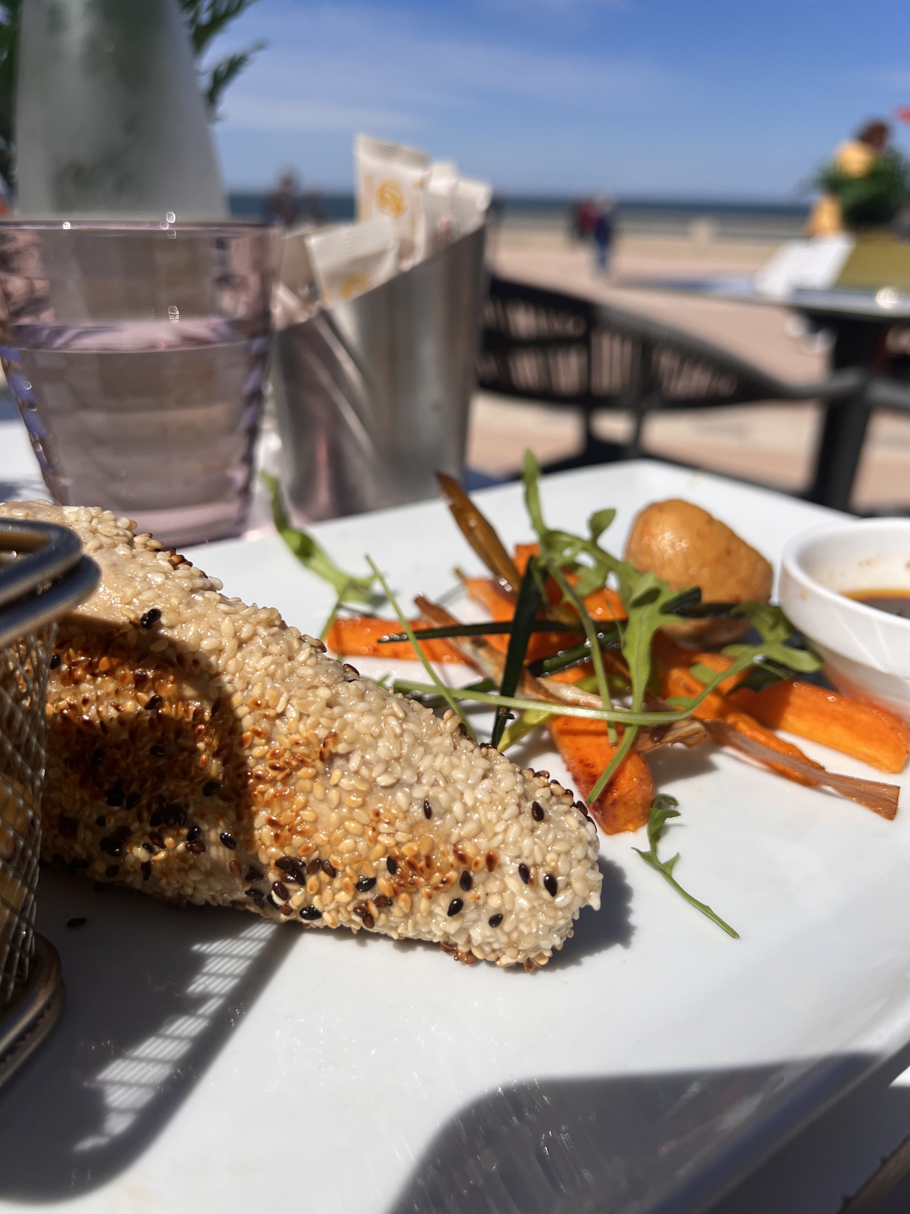 Restaurant bord de plage très agréable ! Je reconnais que nous avons opté pour la Clim :) Les serveurs sont vraiment accueillants et garde le sourire (chaleur très peu supportable au moment de notre venue) Les cocktails sont délicieux (merci le barman). Nous avons pris des plats très différents et aucune déception jusqu’au dessert.