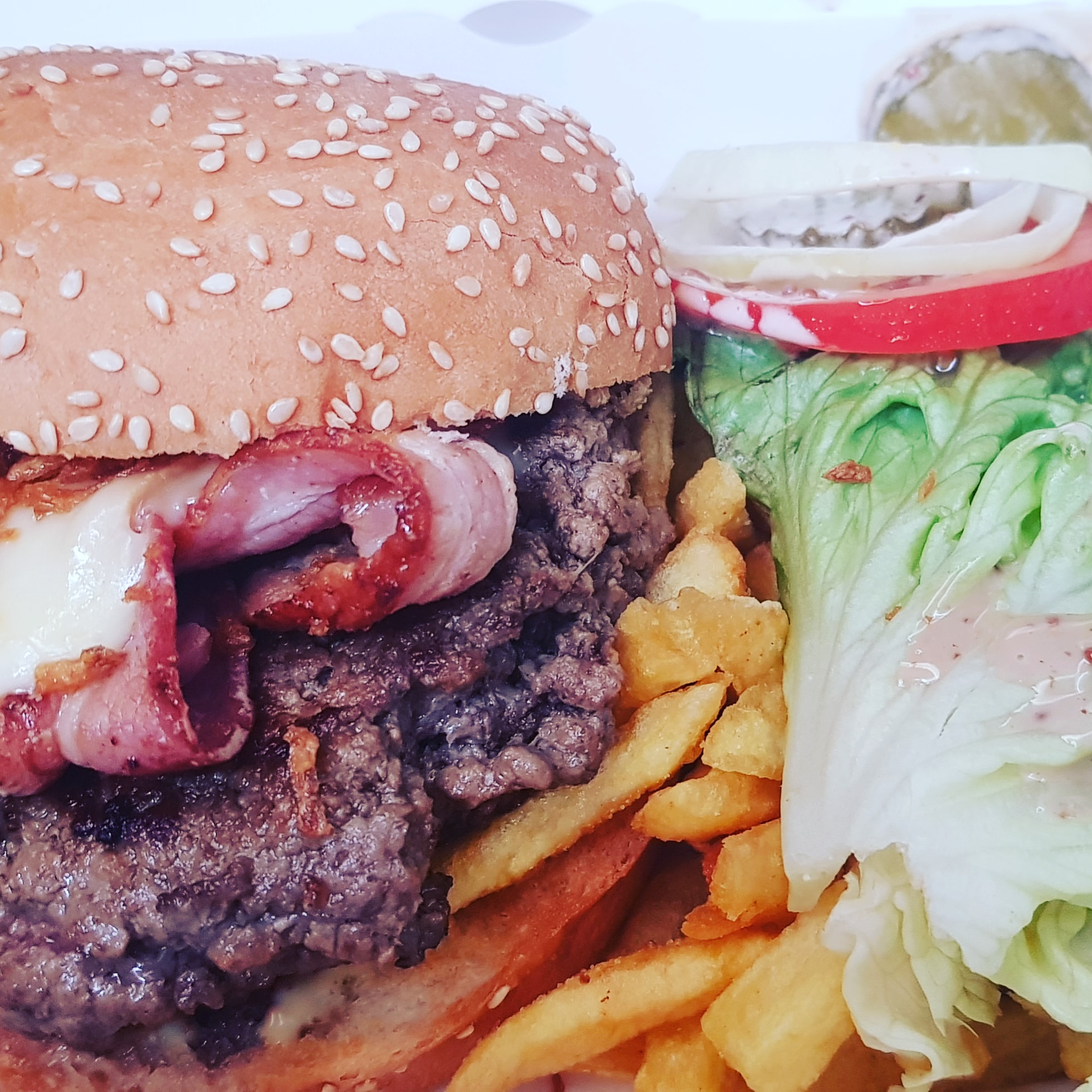 Burger bon mais le pain est un peu trop gros en terme d epaisseur. Très bon prix au vu de la grande quantité de viande.