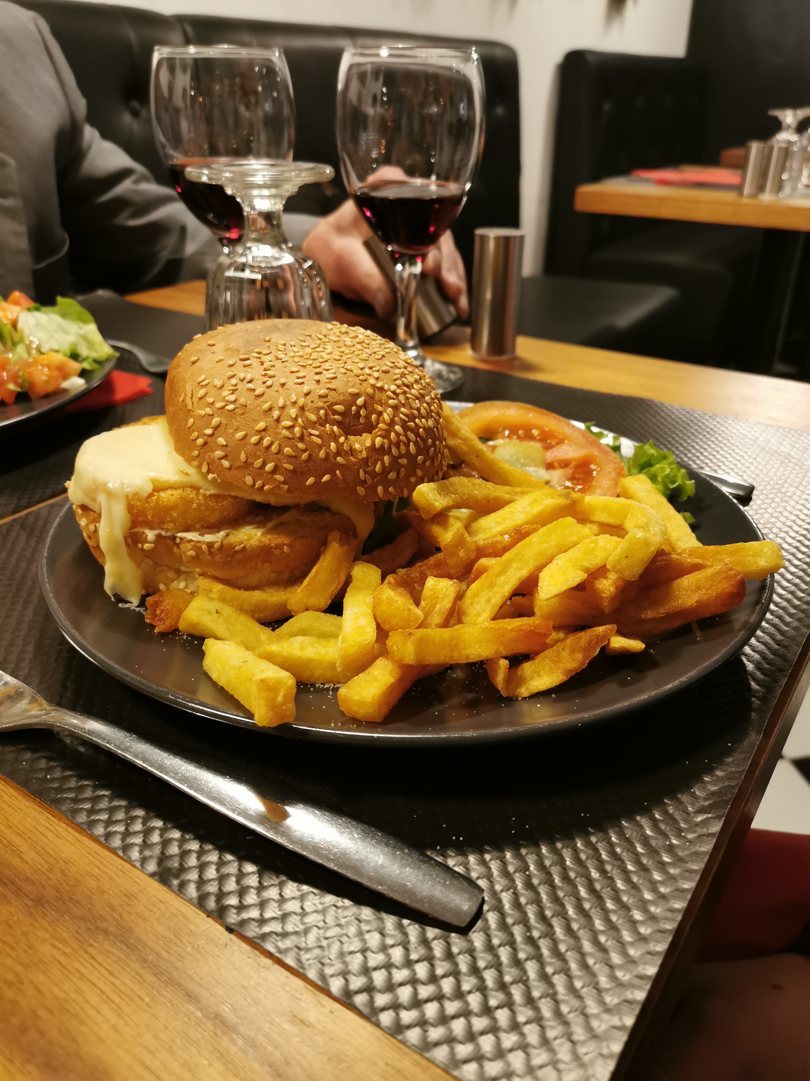 Le plat et le vin qui arrivent en même temps que l'apéritif c'est pas génial, frites à peine chaudes....heureusement que le burger était bon
