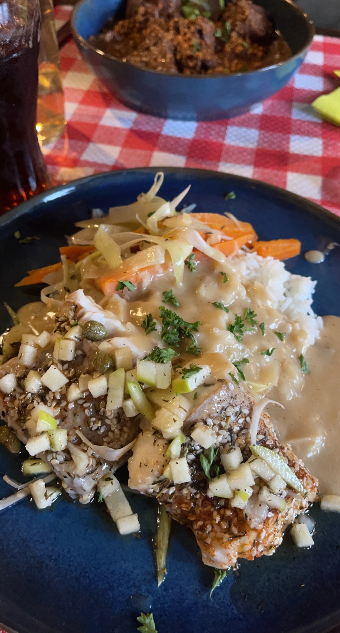 Idéal pour les déjeuner entre collègues Propose tjs un plat poisson pour les régimes alimentaires spécifique (halal), la mousse au chocolat est divine