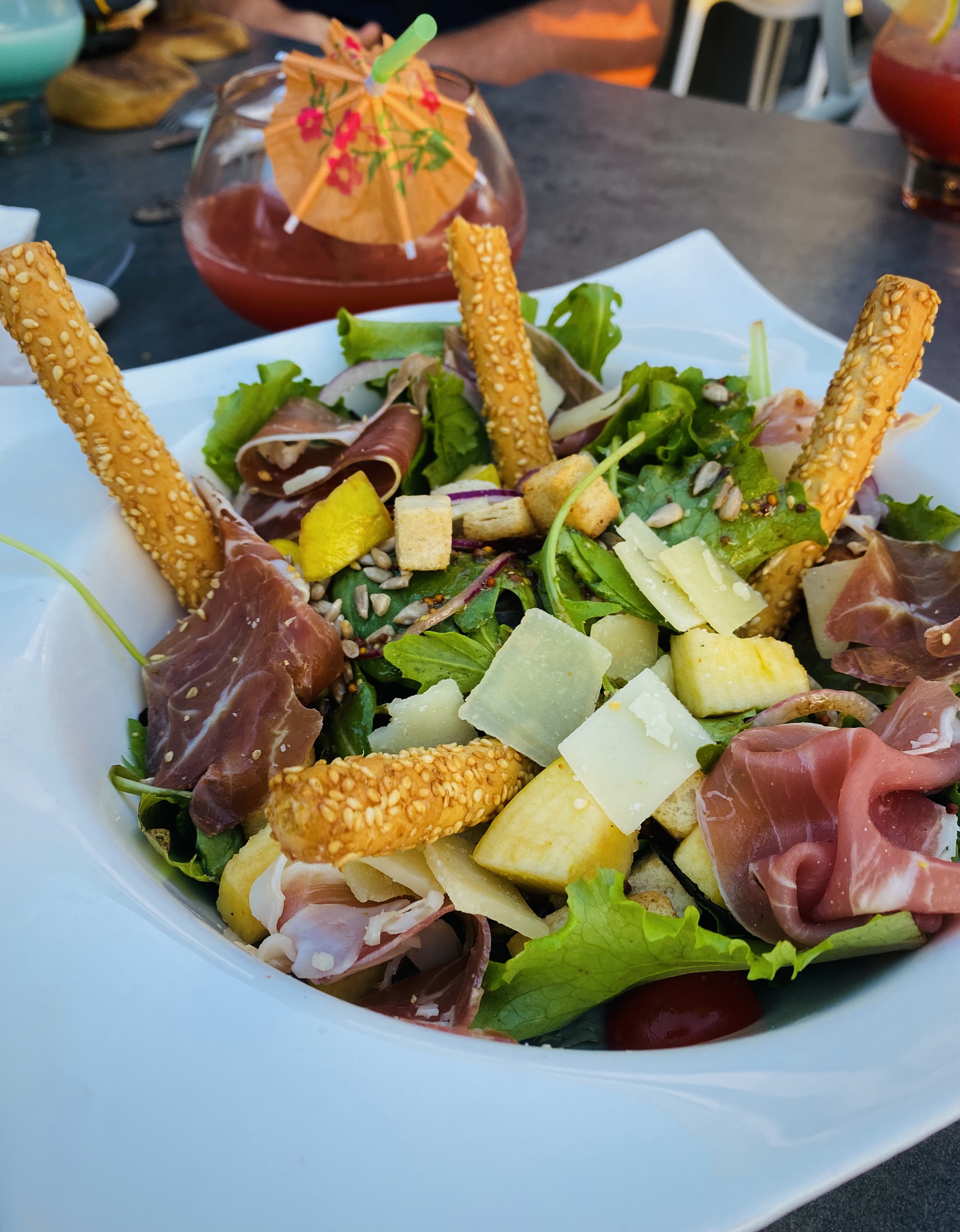 Tapas et salades bien servies. Bon endroit pour manger sur la digue.